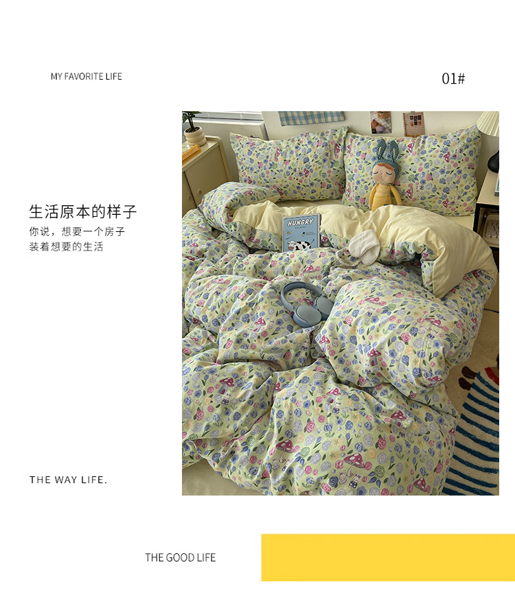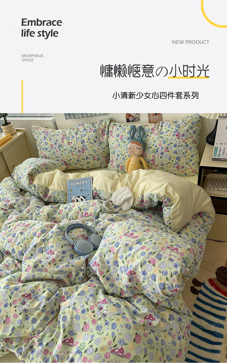 当前位置: 91家纺网 > 商品网购 > 床品套件 > 四件套 > 其它四件套 > 原素 2025软绵绵的双拼印花水洗棉四件套 丛林小兔