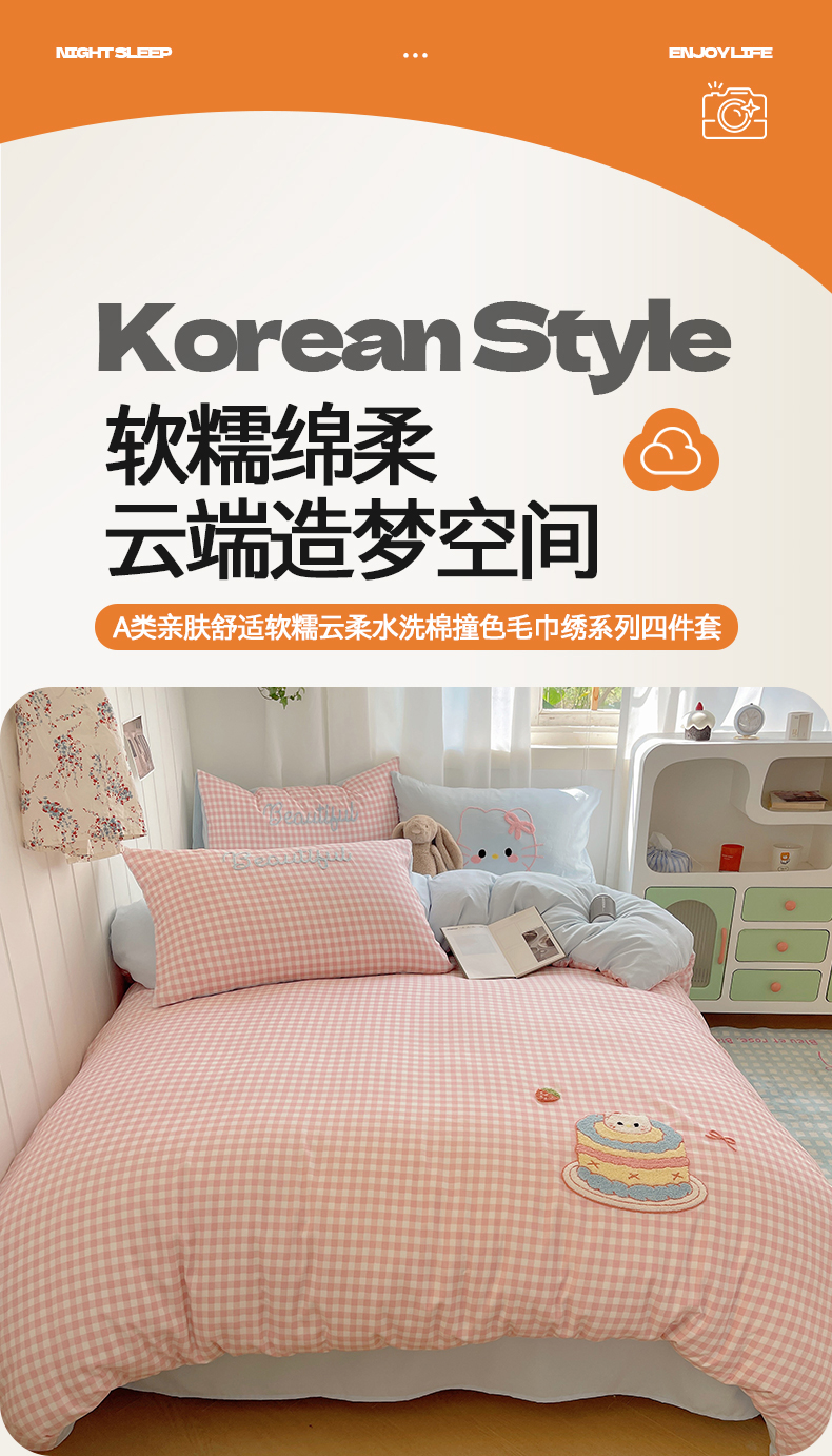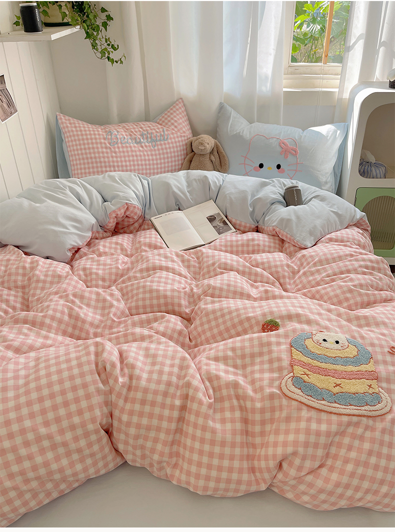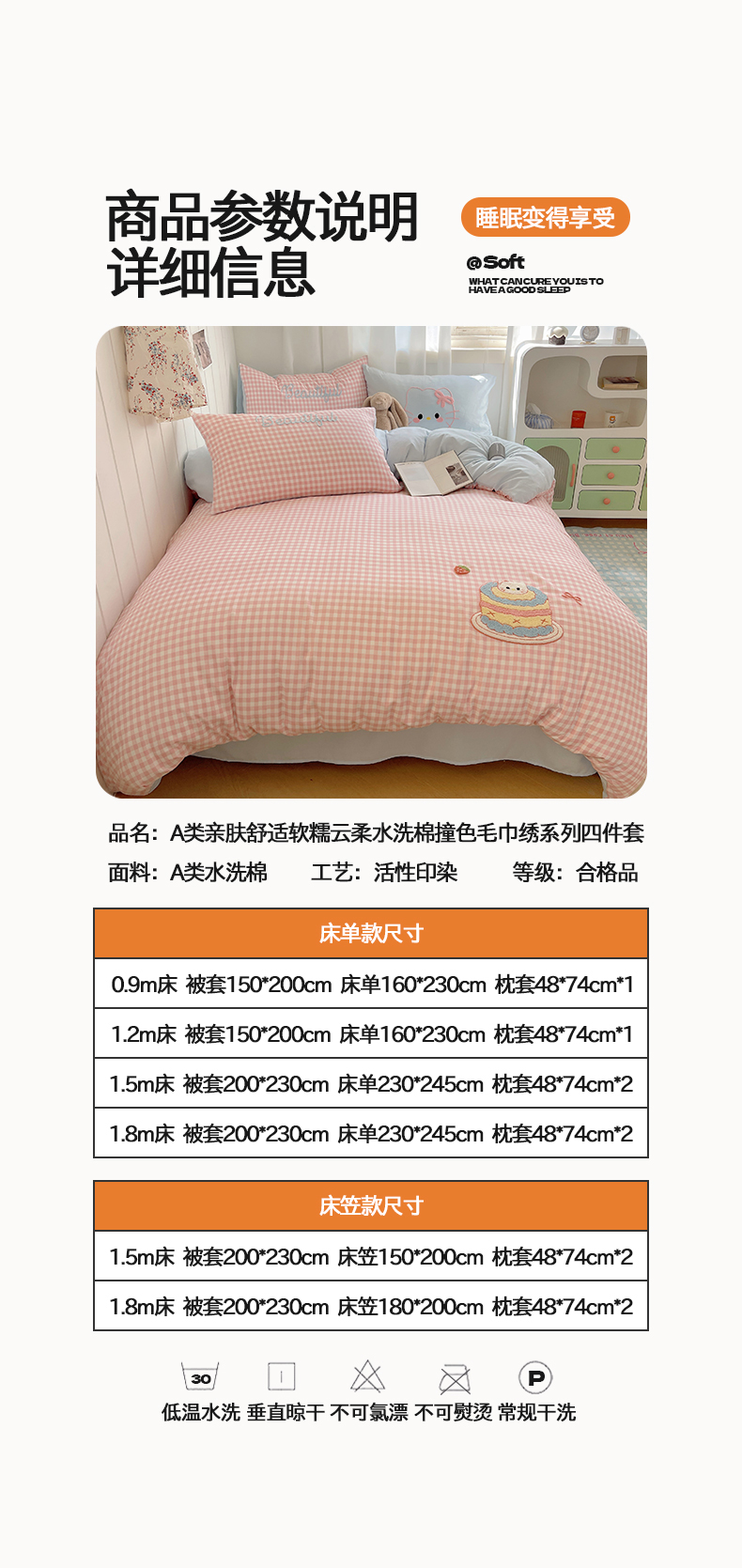 当前位置: 91家纺网 > 商品网购 > 床品套件 > 四件套 > 水洗棉四件套 > 桃心家居 2025新款A类亲肤舒适软糯云柔水洗棉奶油格子撞色毛巾绣猫咪蝴蝶结水洗棉系列四件套 云柔水洗棉-蛋糕猫咪粉蓝
