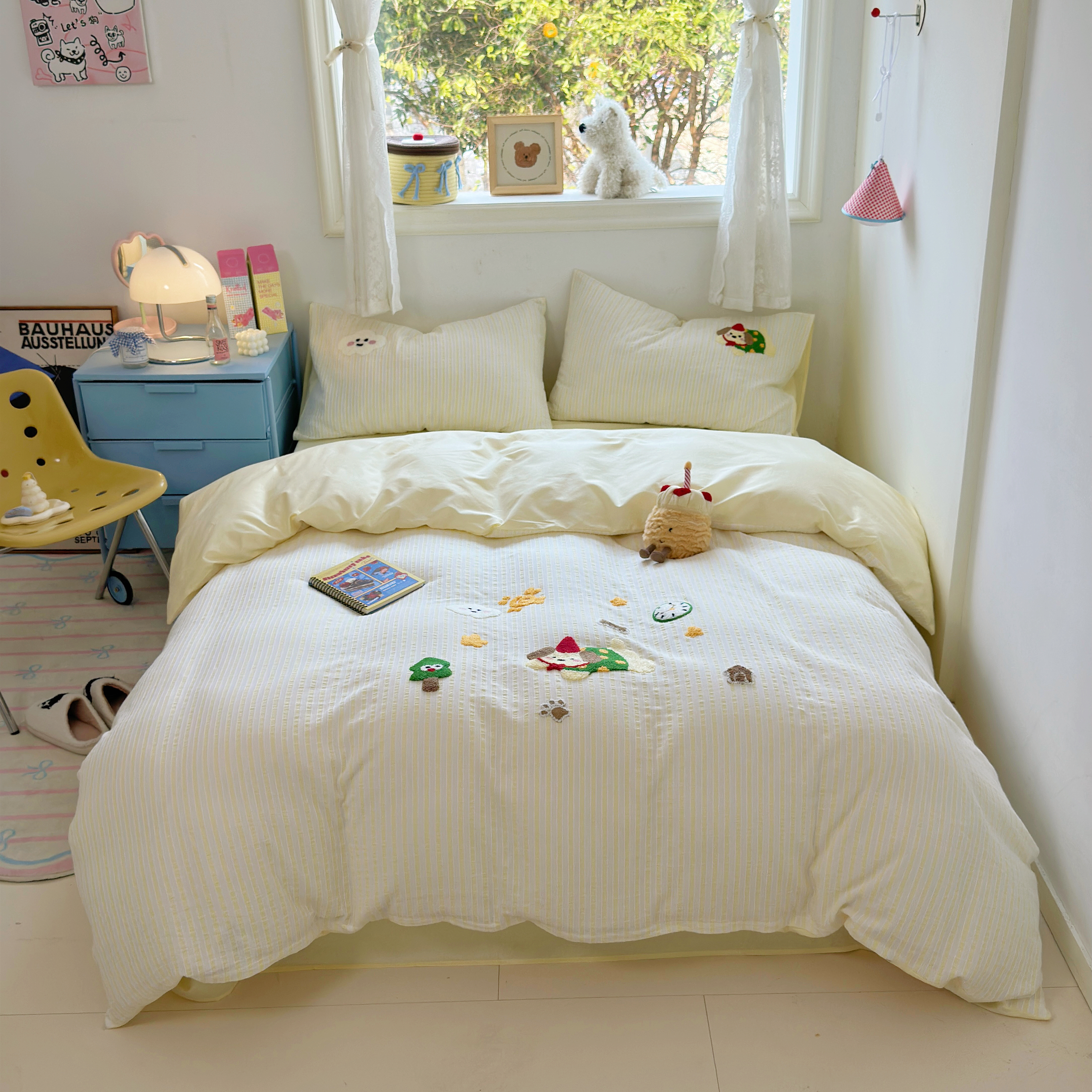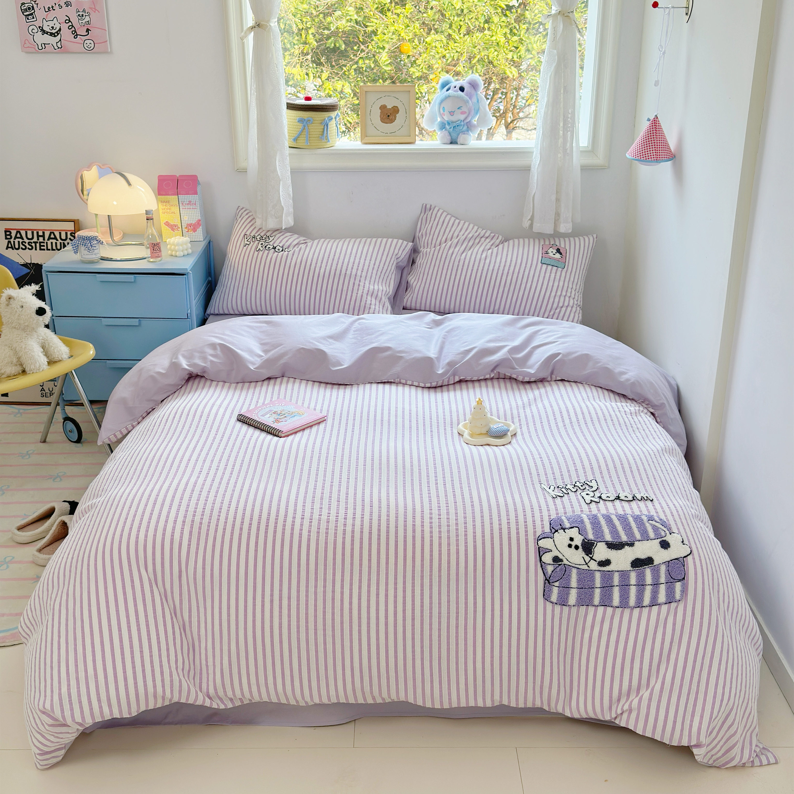 (总)珺柔家纺 2025新款全棉双层纱印花四件套,粉豹纹,焦糖小曲奇,礼物女孩,猫狗日记,奶油星空,线条苹果猫,小飞象,小狗的家,樱桃,樱桃西高地