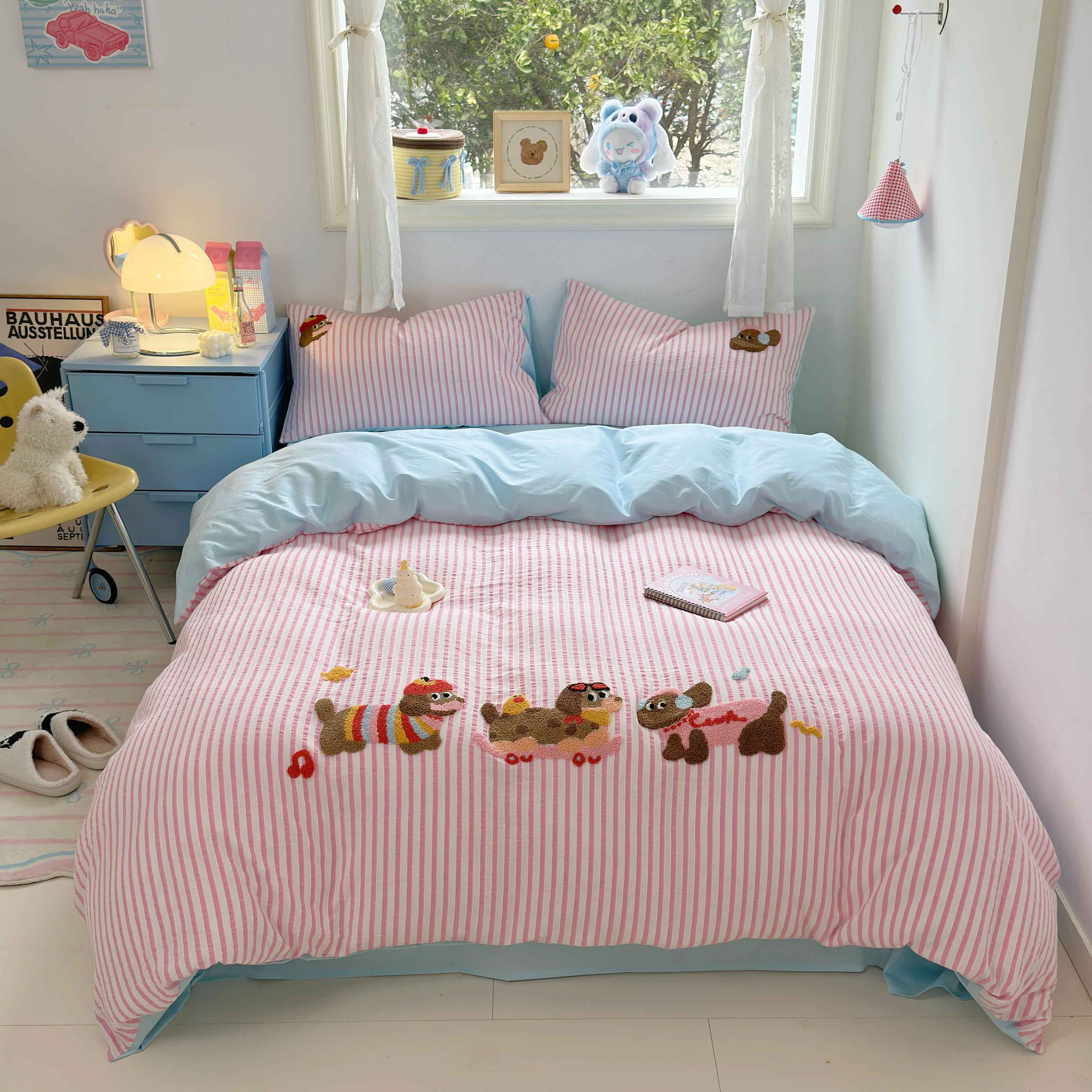 (总)珺柔家纺 2025新款13070数码枕毛巾绣系列四件套,奔跑小兔,蛋糕小兔,欢乐小狗,可爱小猫,奶油小熊,条纹小狗