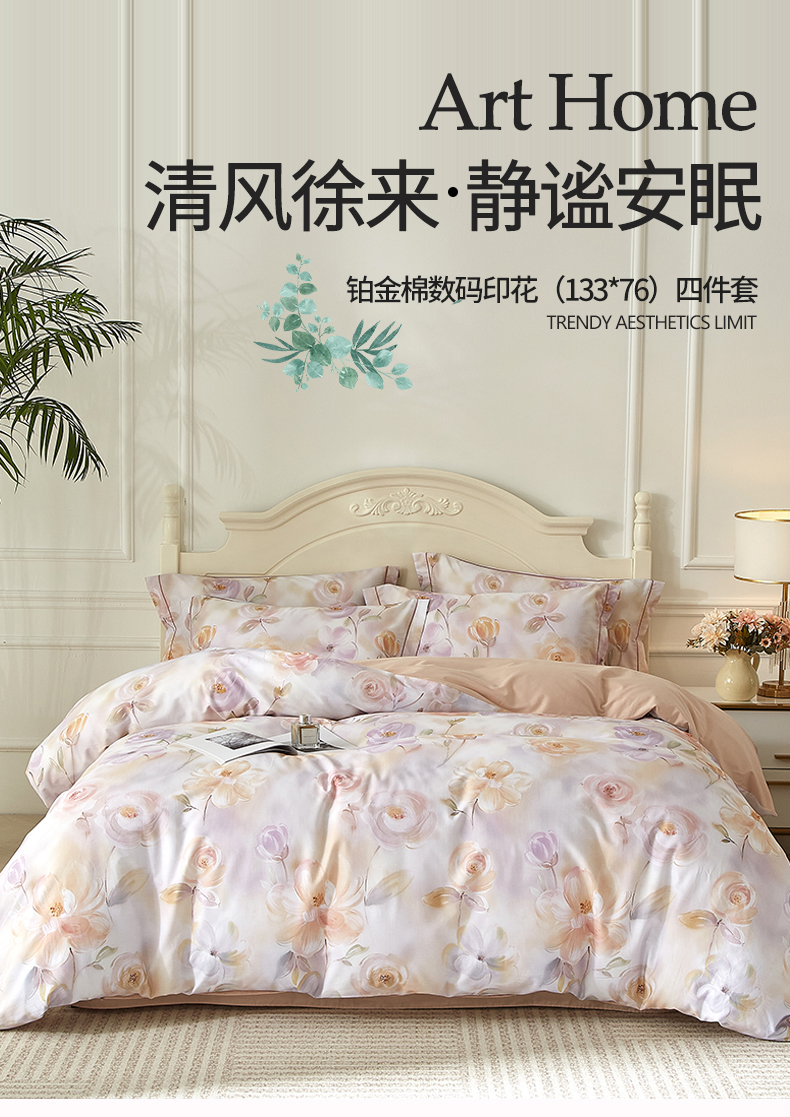 曼秀琳 2025新款铂金棉数码印花四件套(全棉133*76) 芸婉-玉