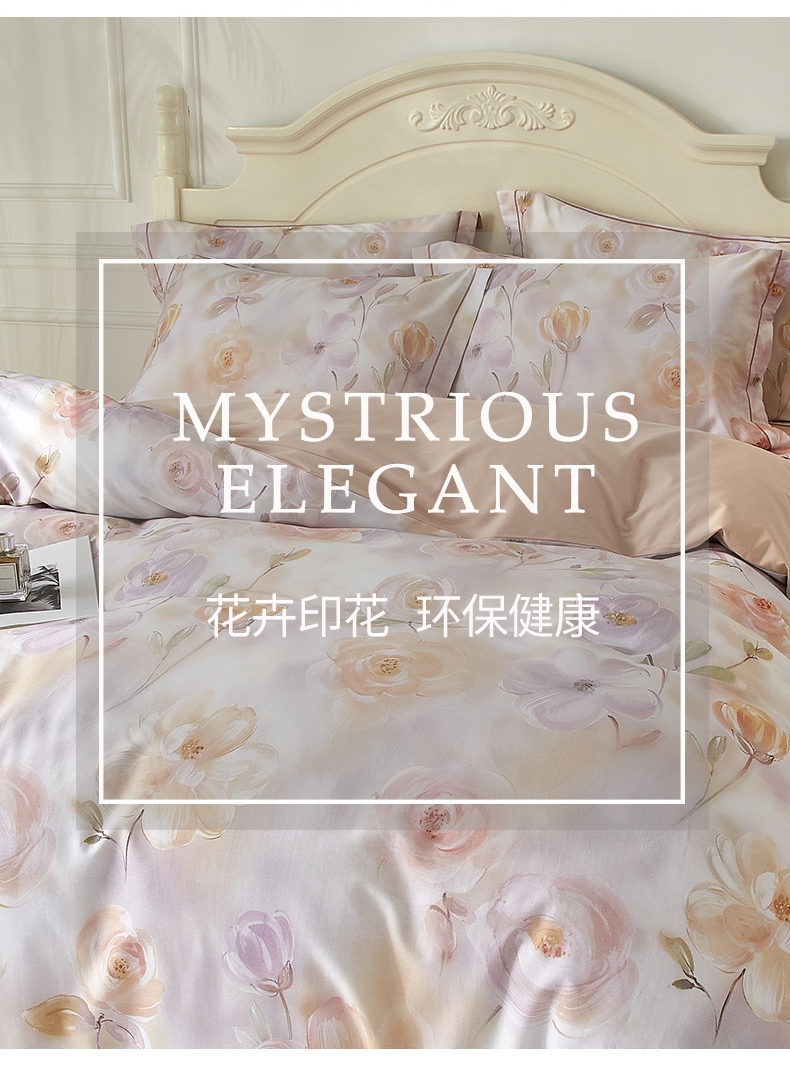 商品名称:曼秀琳 2025新款铂金棉数码印花四件套(全棉133*76) 芸婉-玉