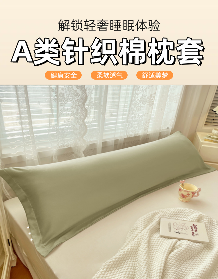 商品名称:梦舒羽 2025新款针织棉双层纱枕头套亲肤双人枕套枕芯套枕头内胆套 豆绿