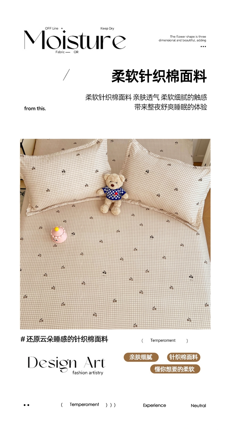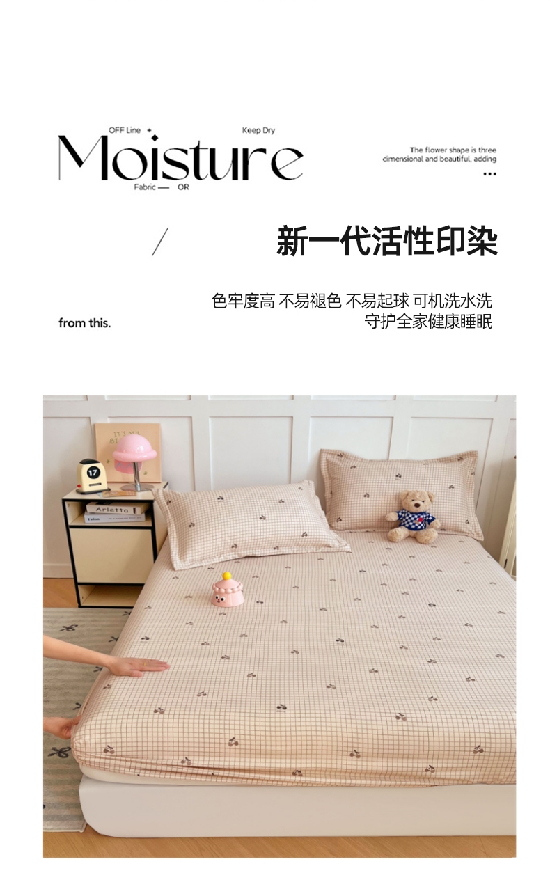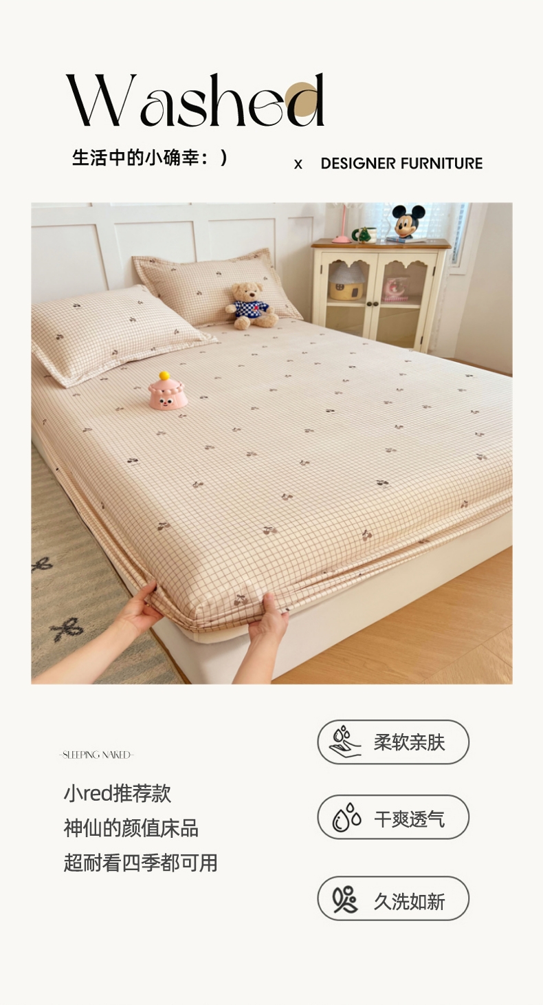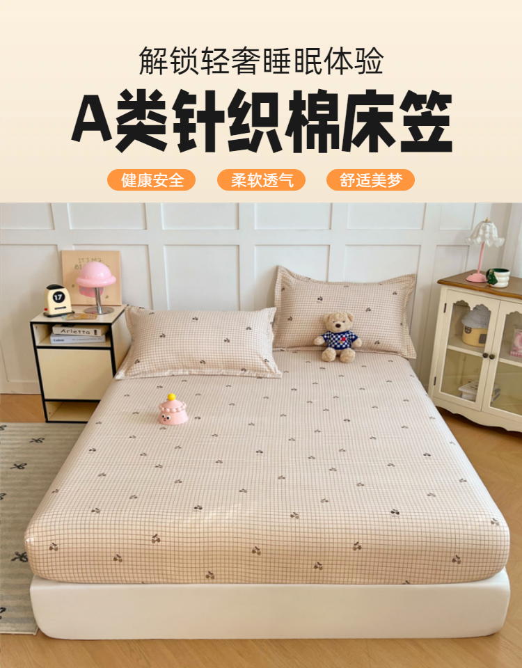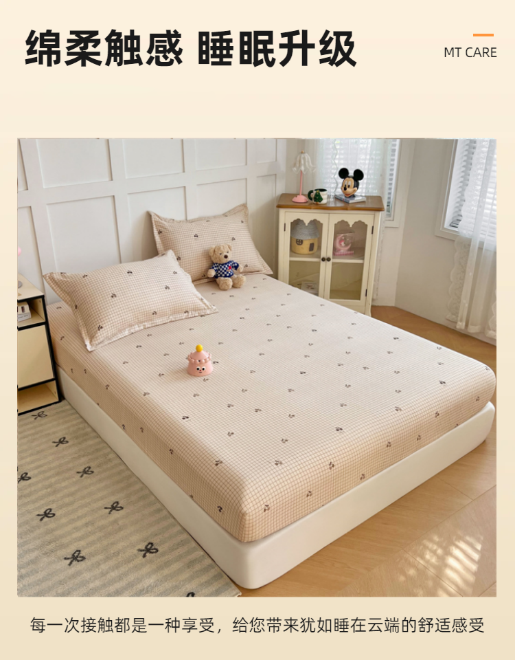 • 91家纺网 家纺一手货源 找家纺 梦舒羽 2025新款针织棉双层纱双层纱床笠罩全包席梦思床垫保护罩 樱桃小熊