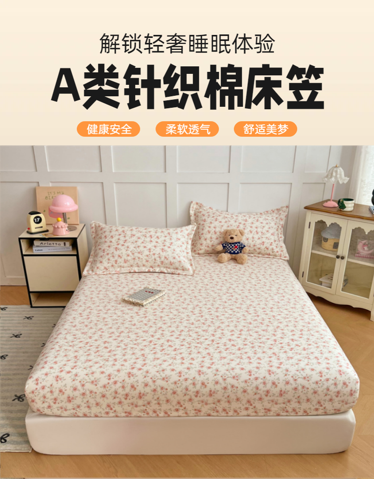 • 91家纺网 家纺一手货源 找家纺 圣比熊 2025新款针织棉双层纱床笠罩全包席梦思床垫保护罩 情迷花海