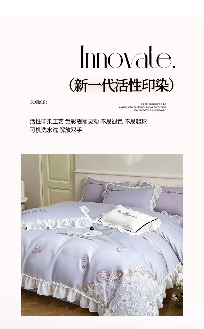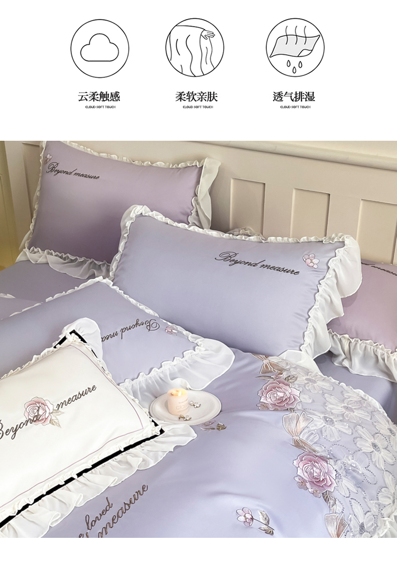 (总)七七家纺 2025新款水洗棉刺绣四件套梦见系列,梦见豆沙,梦见粉,梦见黄,梦见蓝,梦见紫