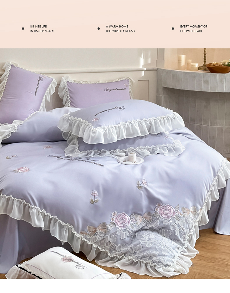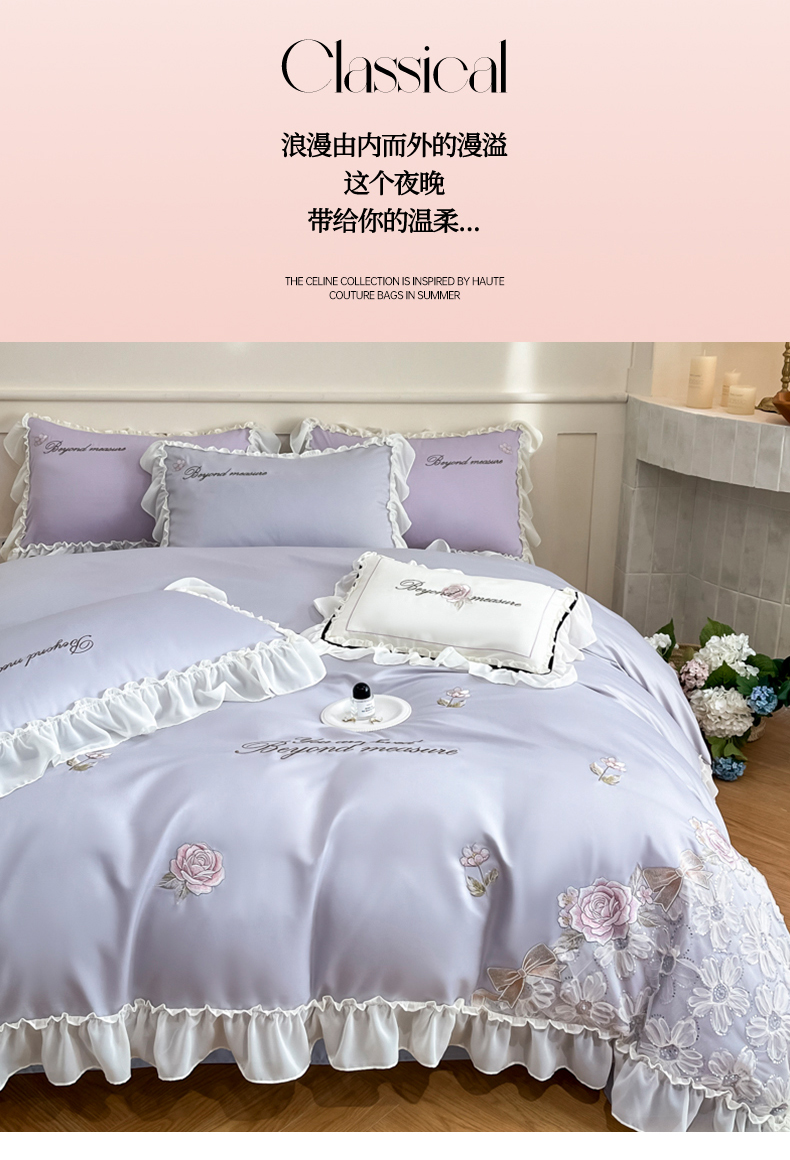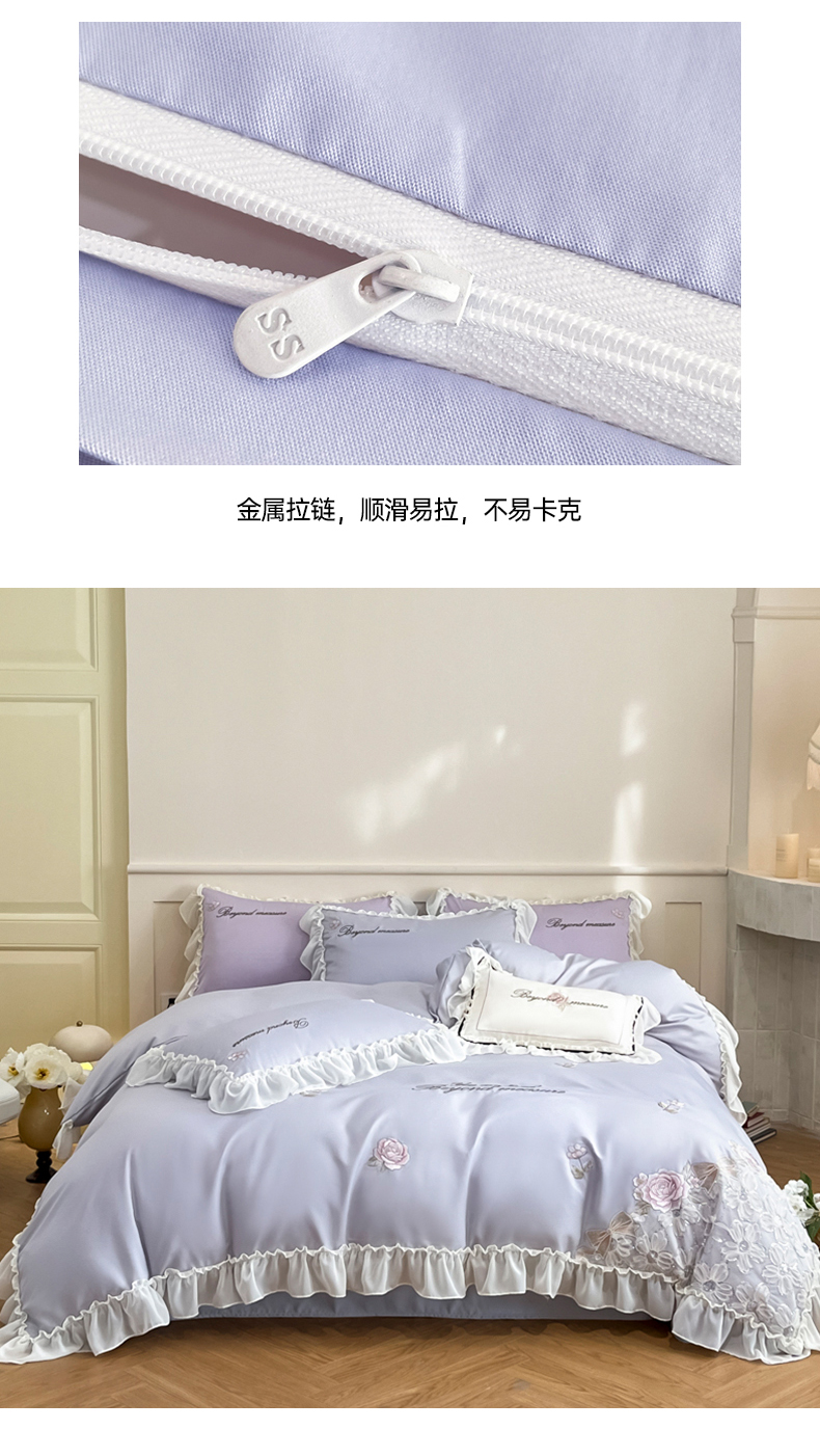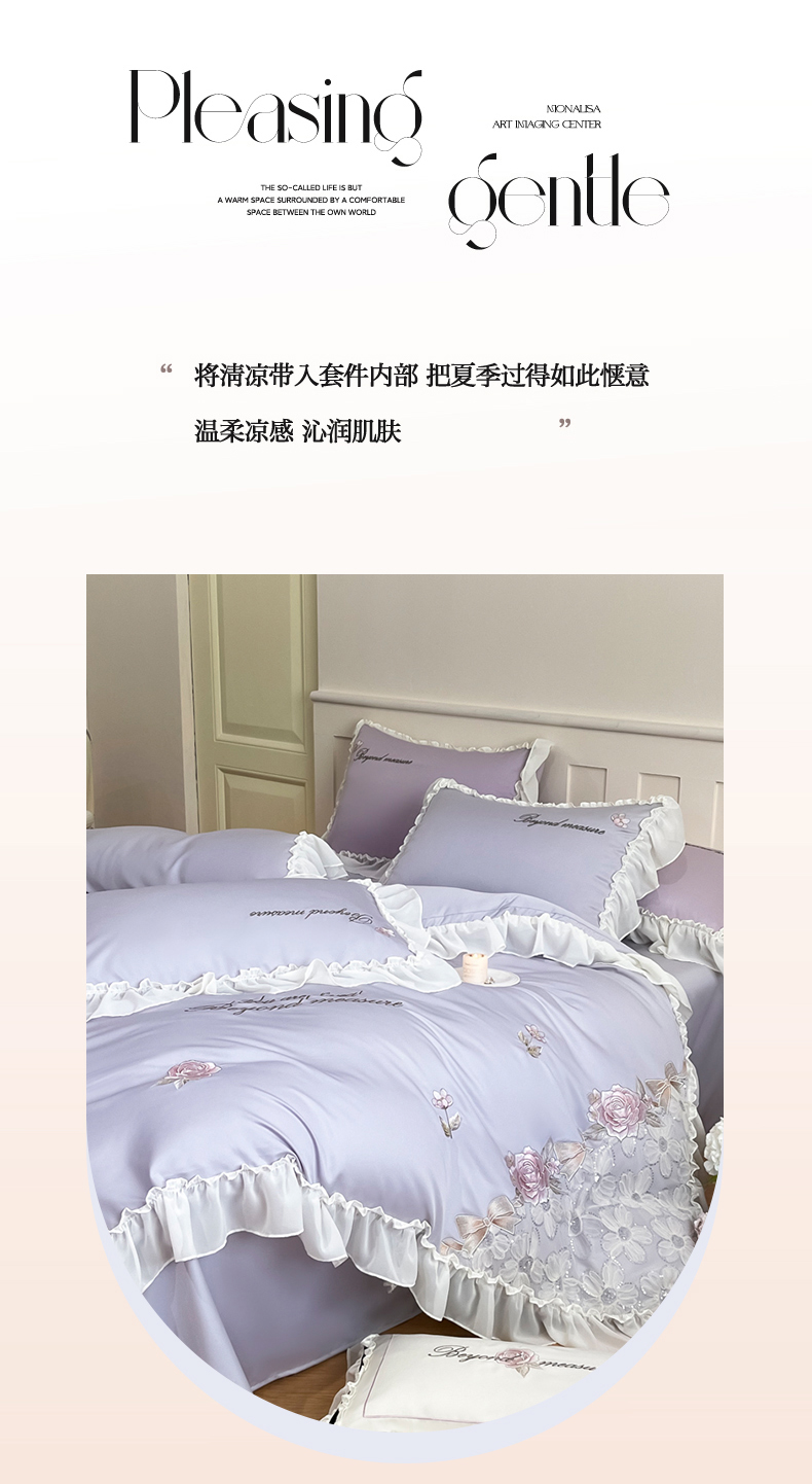 (总)七七家纺 2025新款冰丝刺绣款四件套幽兰系列,幽兰白,幽兰粉,幽兰灰,幽兰蓝,幽兰紫