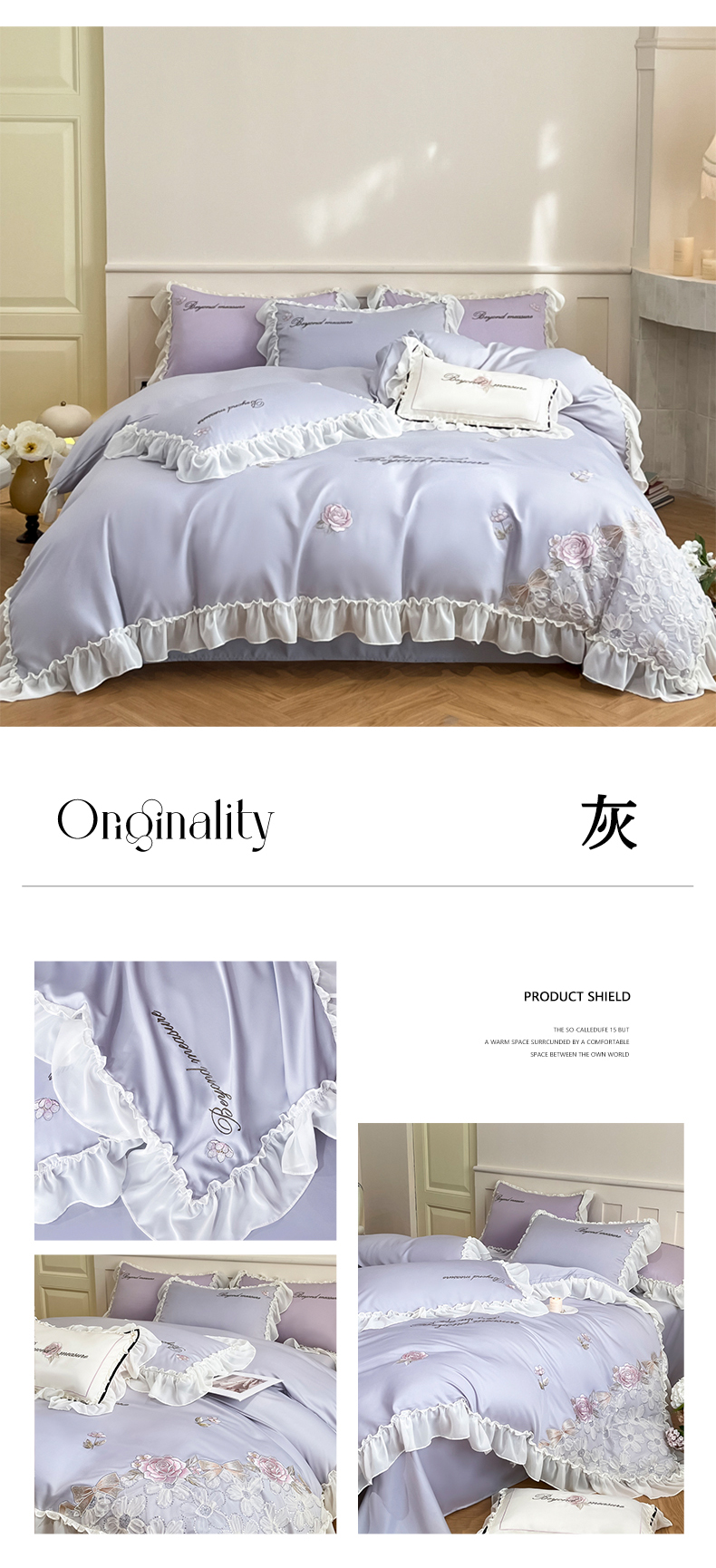 商品名称:七七家纺 2025新款冰丝刺绣款四件套幽兰系列 幽兰灰