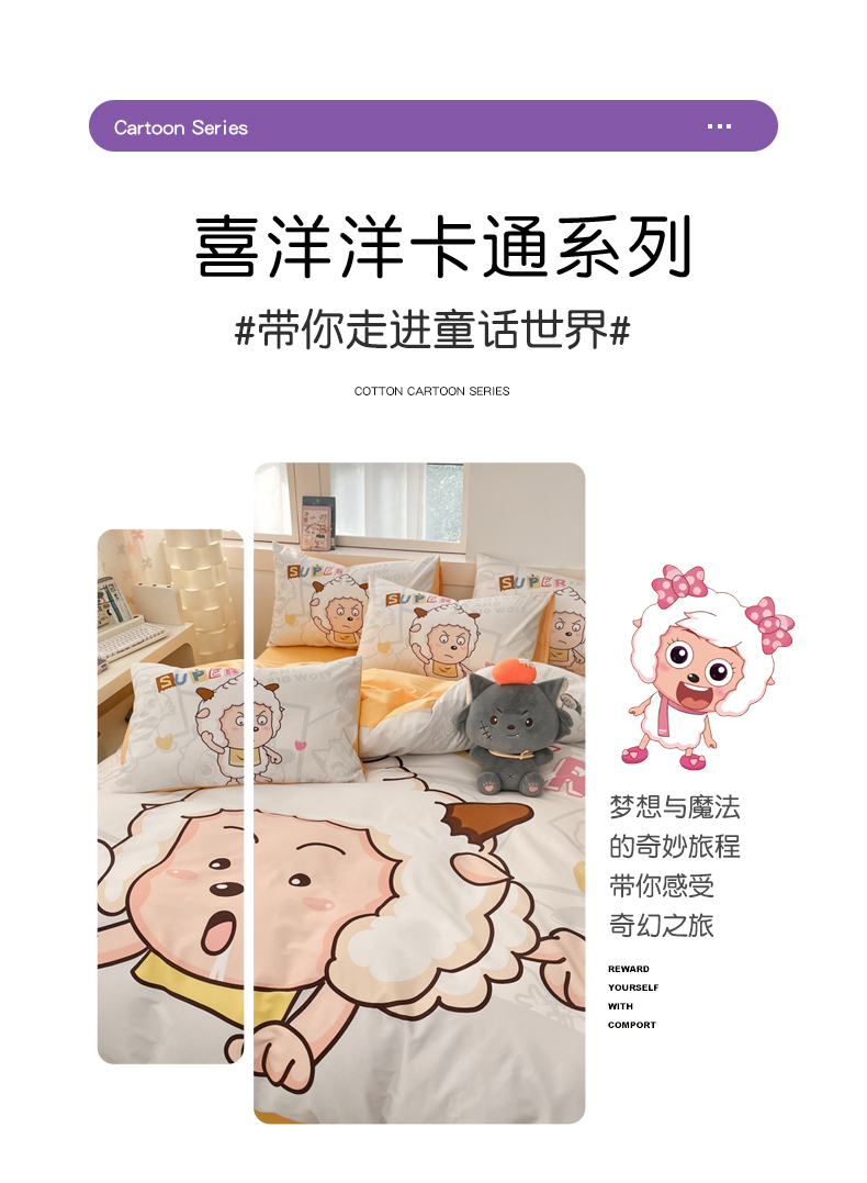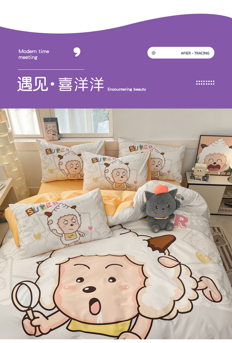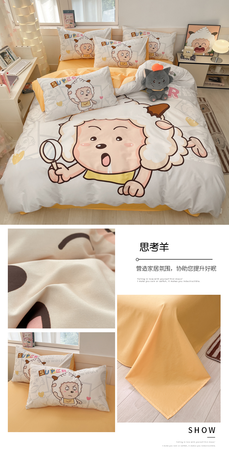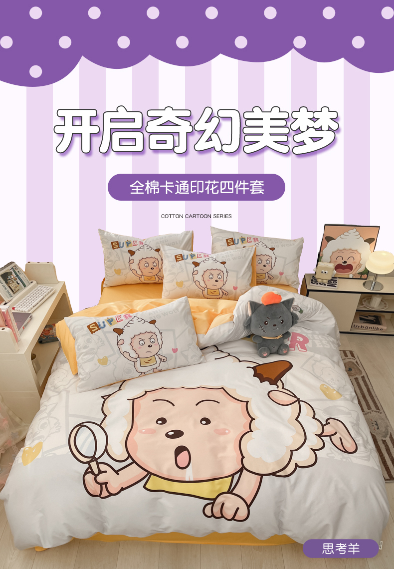 当前位置: 91家纺网 > 商品网购 > 床品套件 > 四件套 > 全棉普通四件套 > 金爱家 2025新款喜洋洋纯棉数码印花系列四件套 思考羊