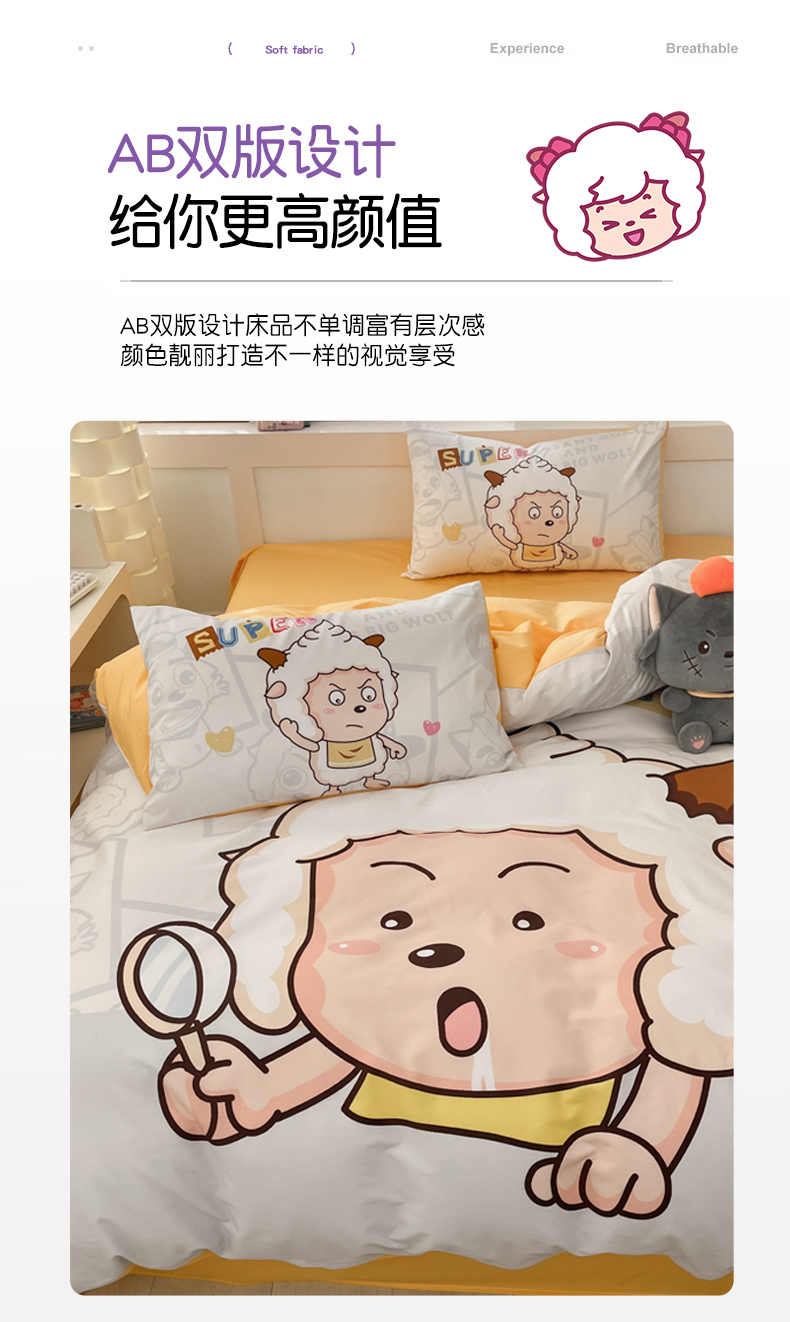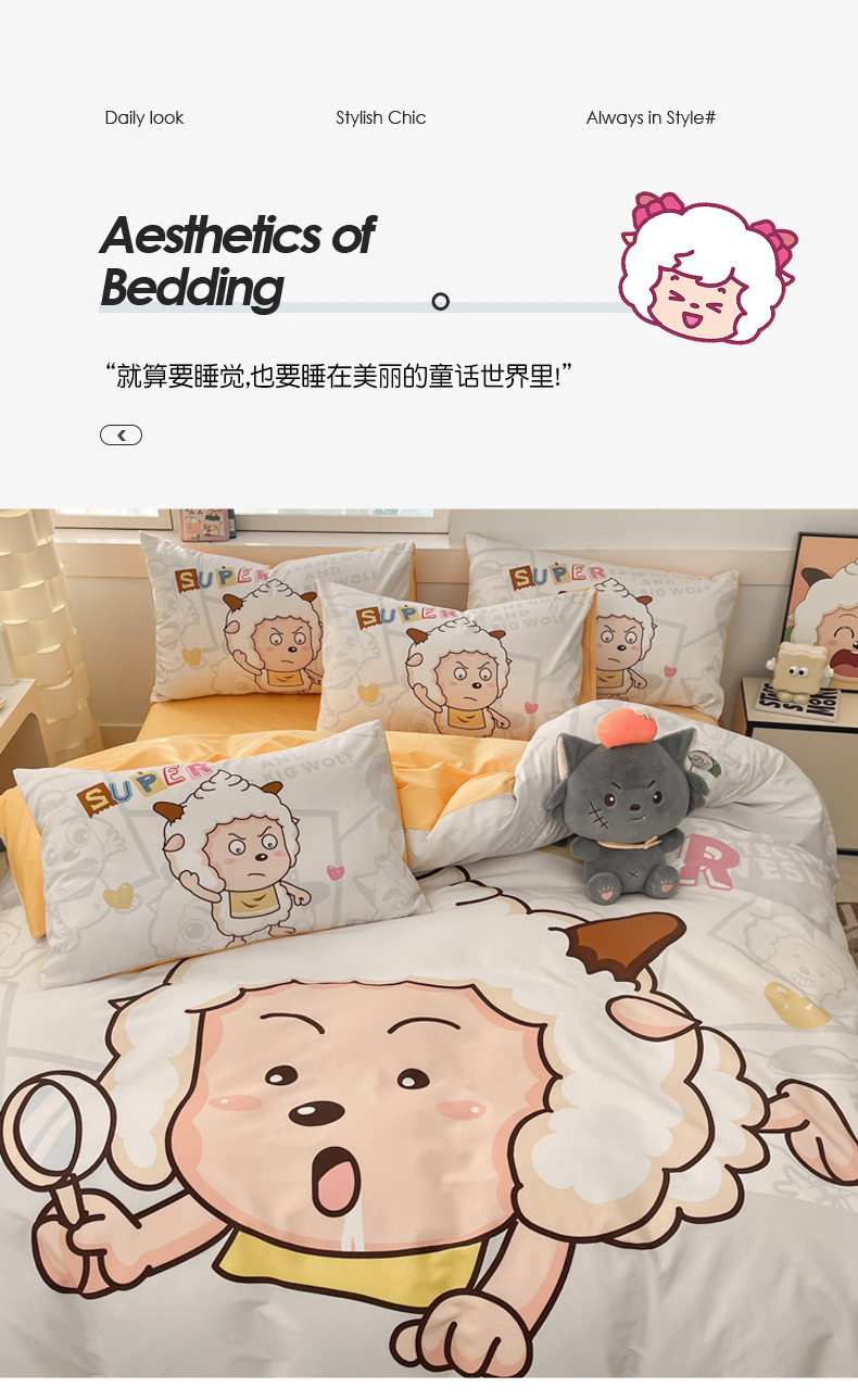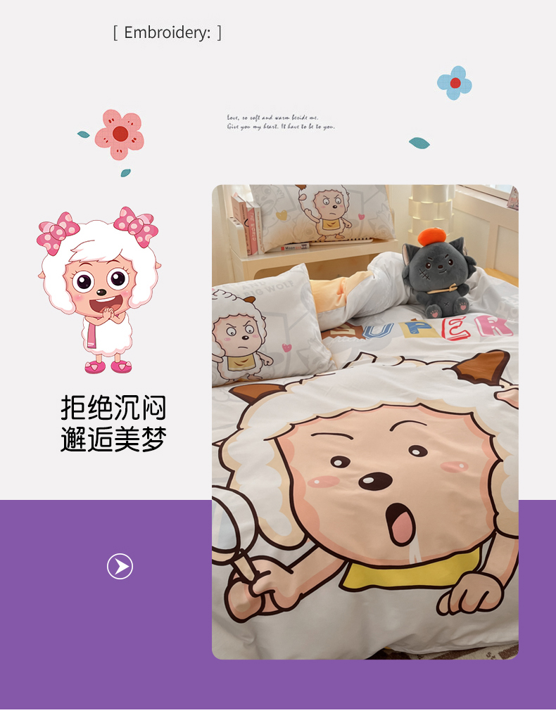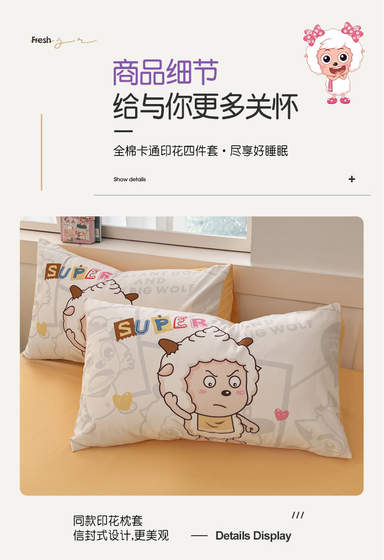 当前位置: 91家纺网 > 商品网购 > 床品套件 > 四件套 > 全棉普通四件套 > 金爱家 2025新款喜洋洋纯棉数码印花系列四件套 思考羊
