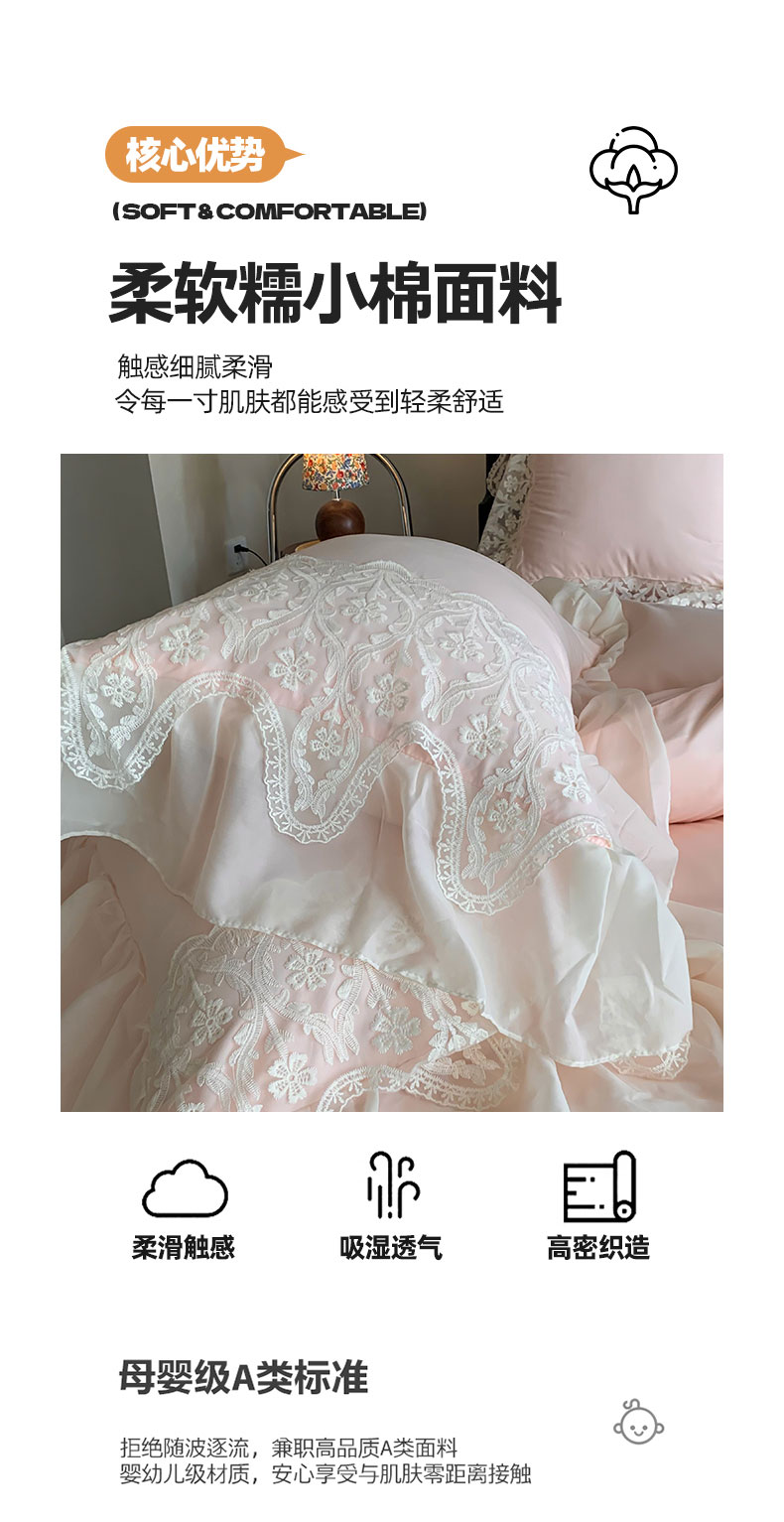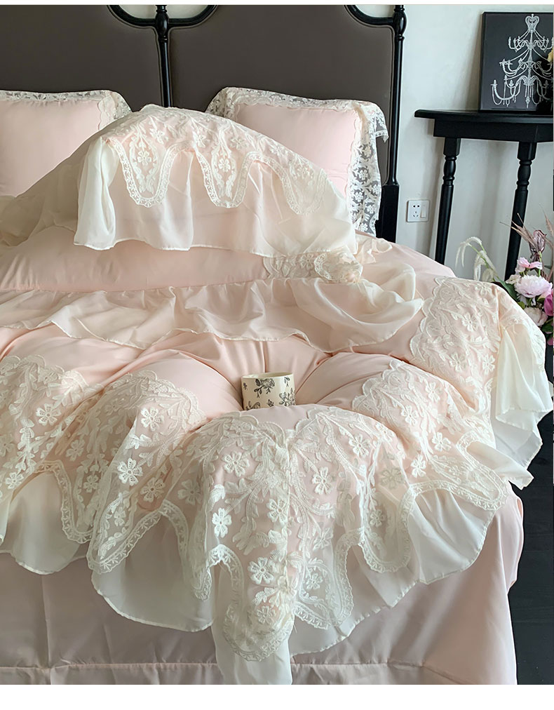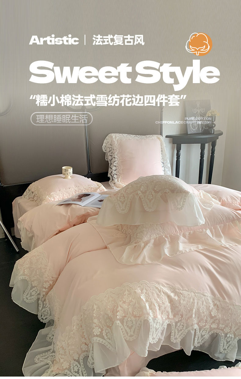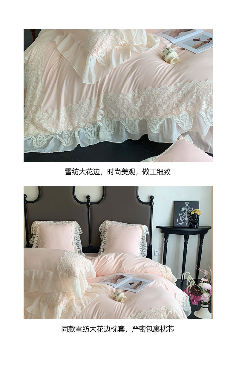 商品名称:吾欢心 2025新款糯小棉法式雪纺花边四件套-巴洛克 巴洛克粉