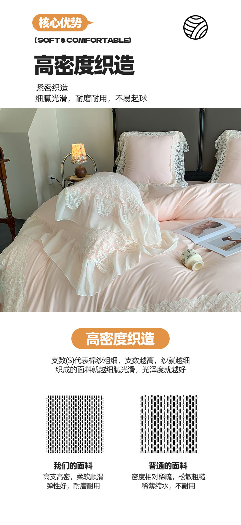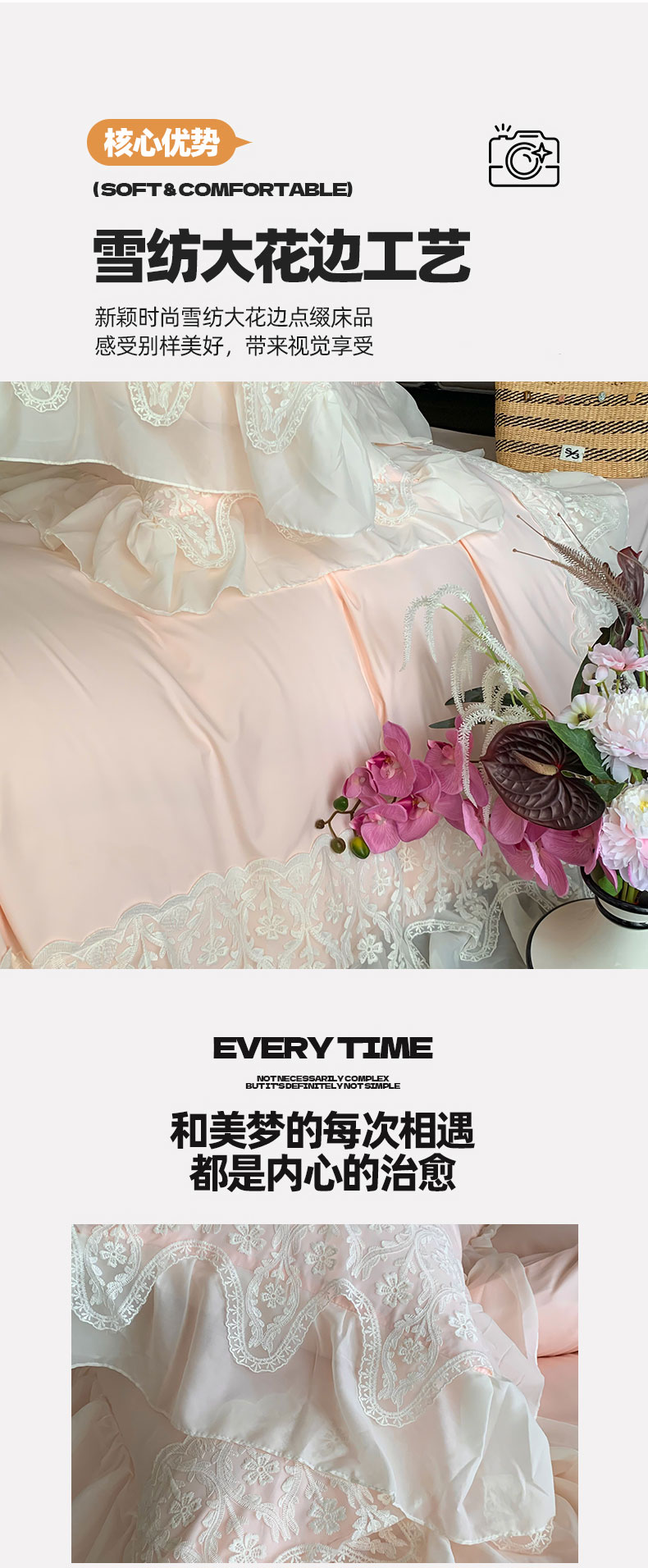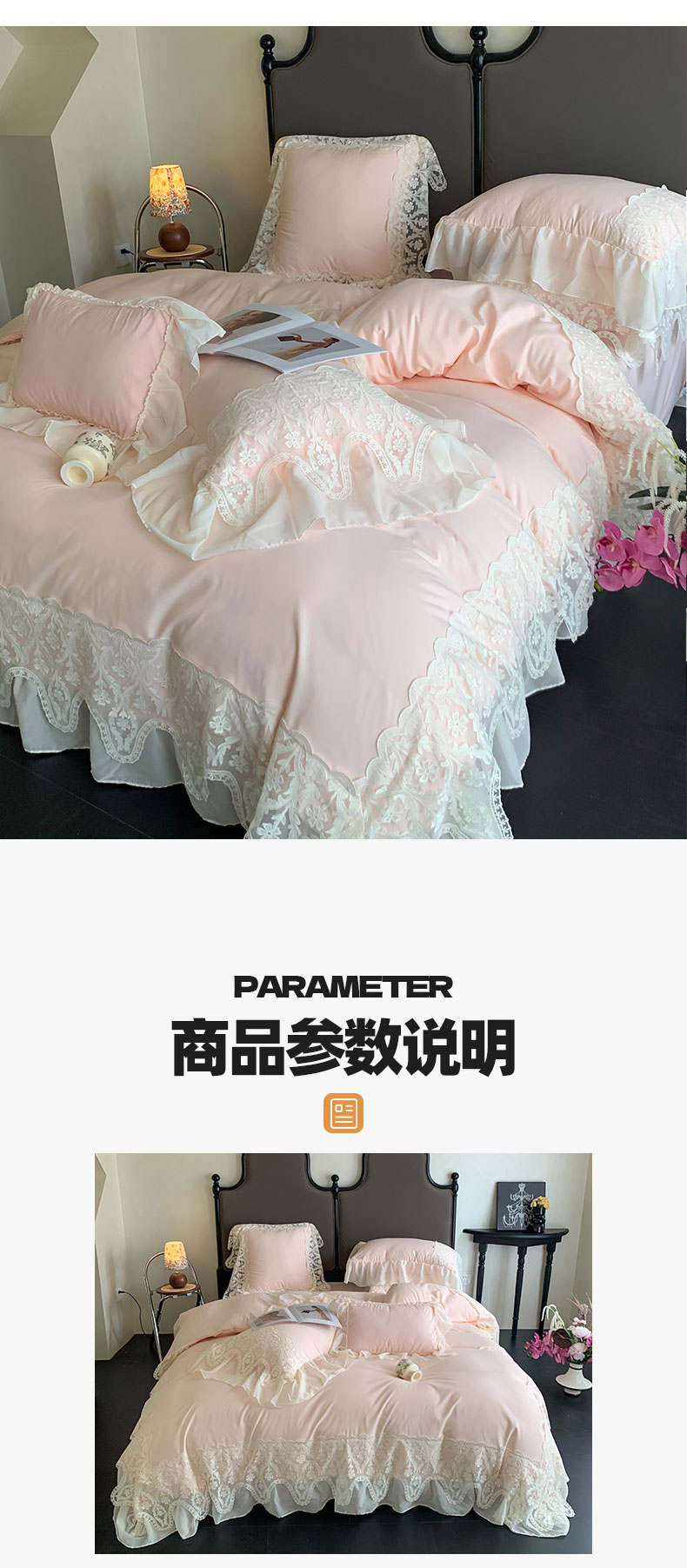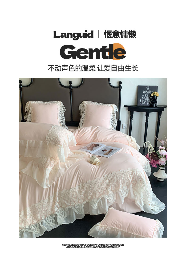 商品名称:吾欢心 2025新款糯小棉法式雪纺花边四件套-巴洛克 巴洛克粉