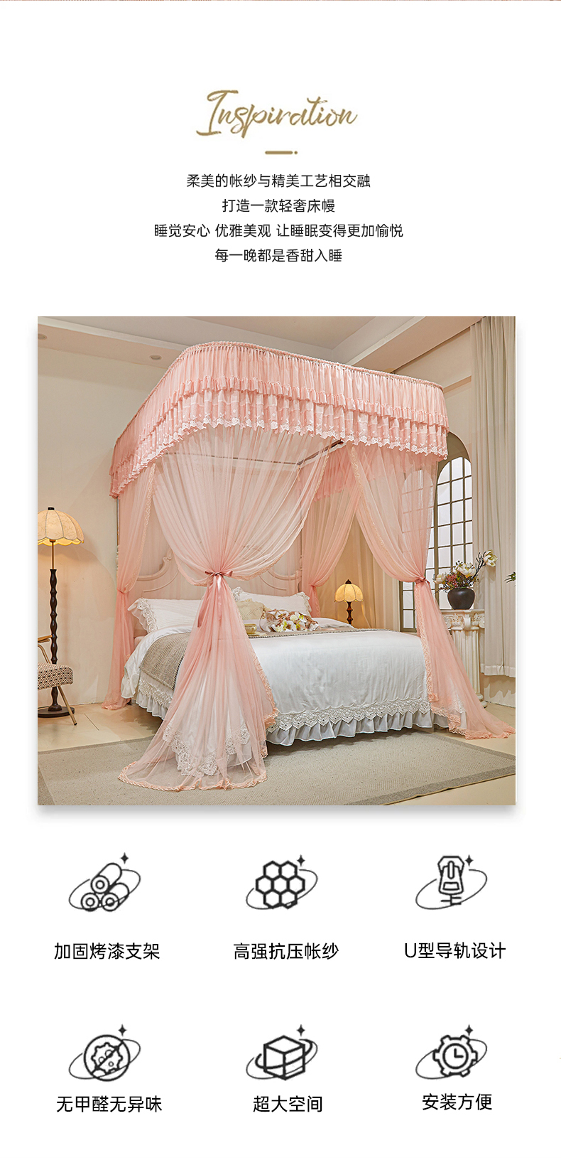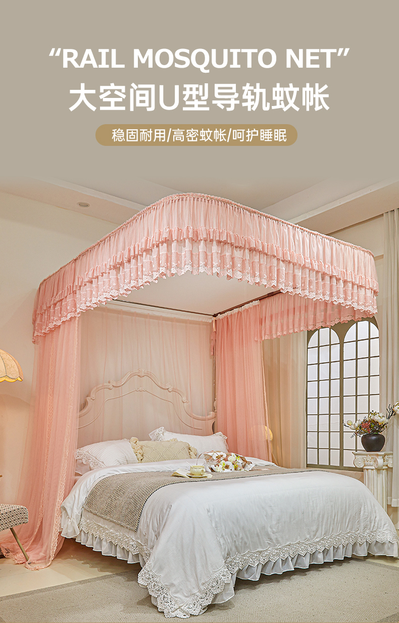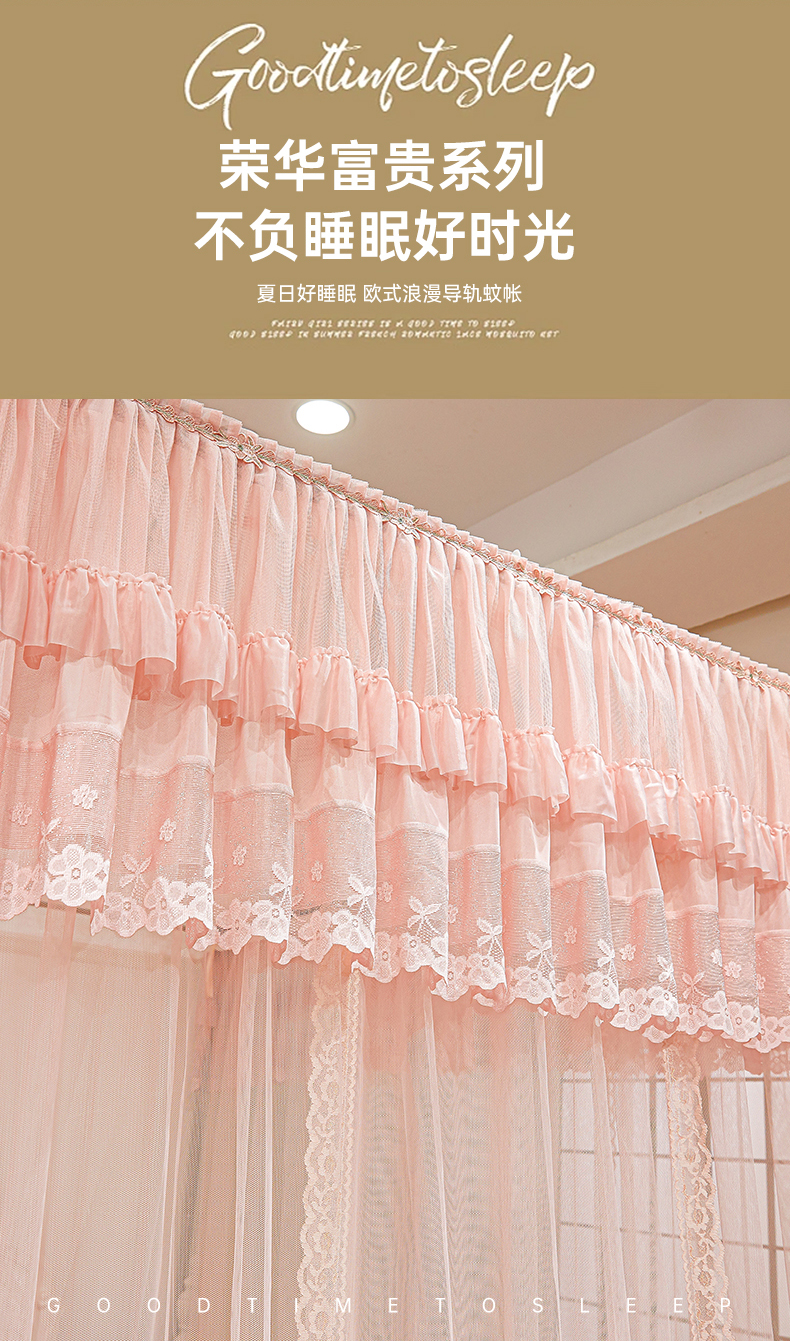 (总)梦尔佳蚊帐2025新款U型导轨蚊帐-861荣华富贵系列,宛如玉,婚纱白,天空蓝,温柔黄,喜庆粉