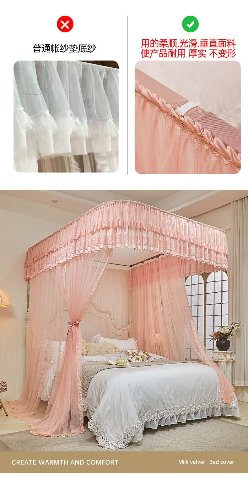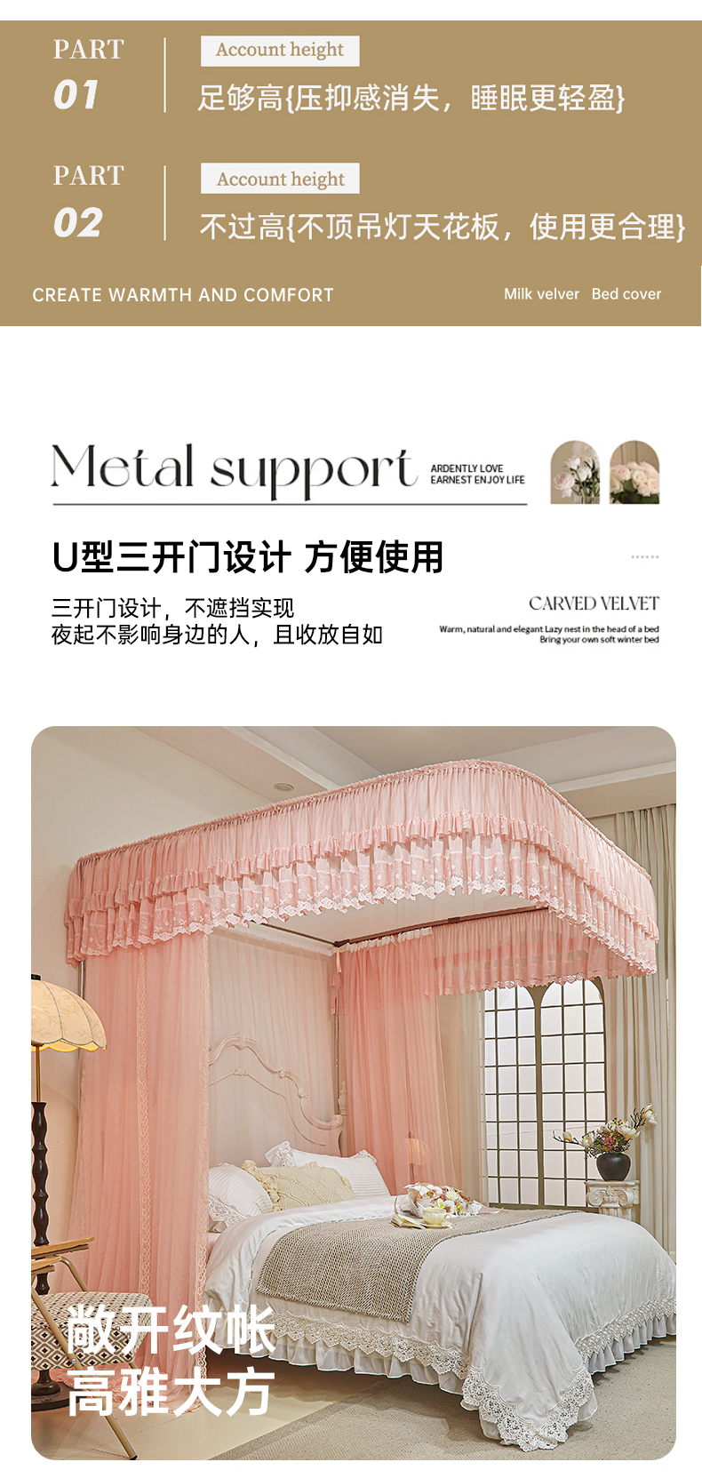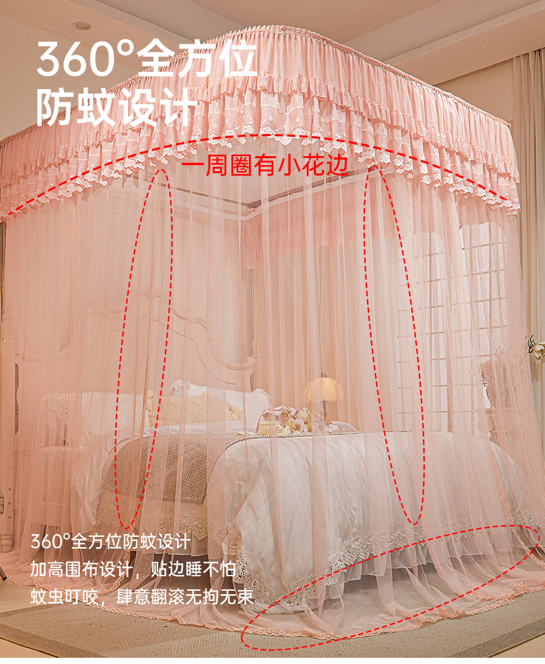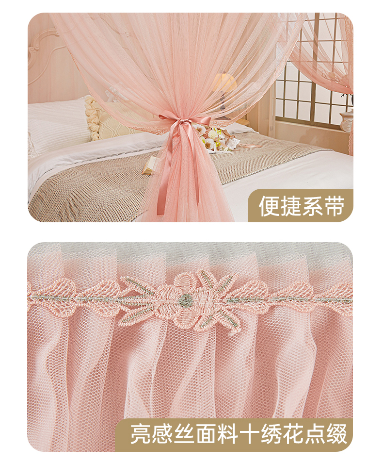 (总)2025新款双层花边全包围床笠款三开门蚊帐-幽梦星辰,奶黄,藕玉,颜淡蓝