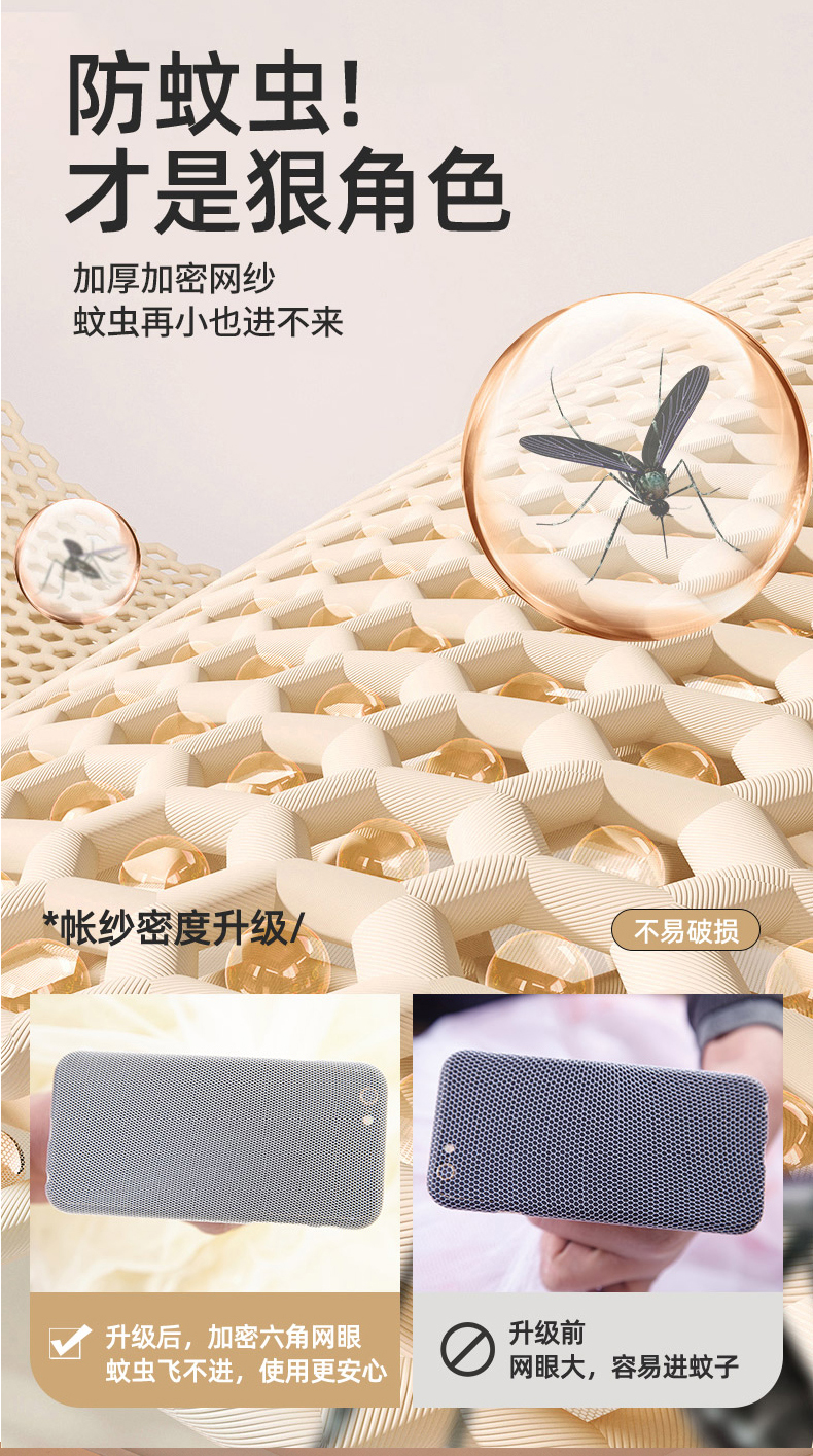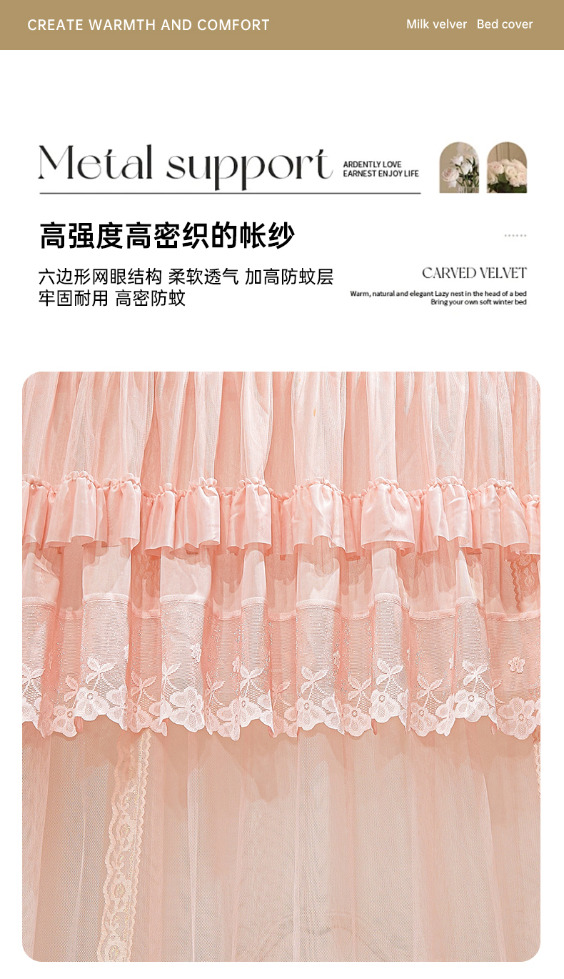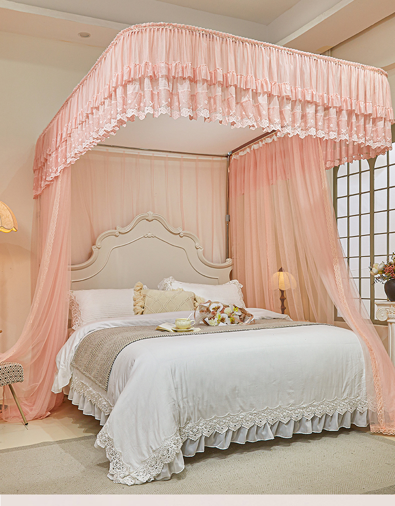 (总)2025新款双层花边全包围床笠款三开门蚊帐-幽梦星辰,奶黄,藕玉,颜淡蓝