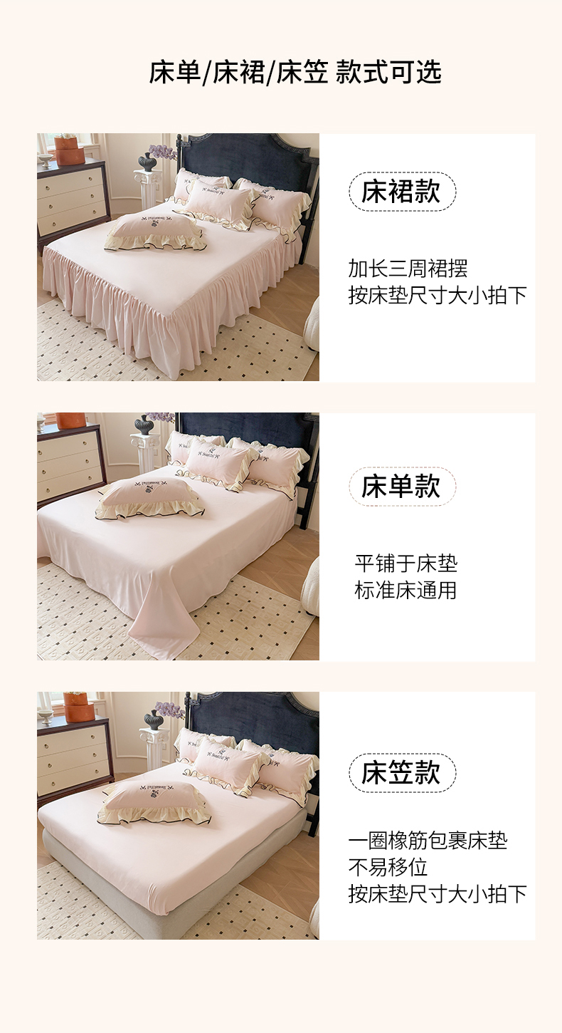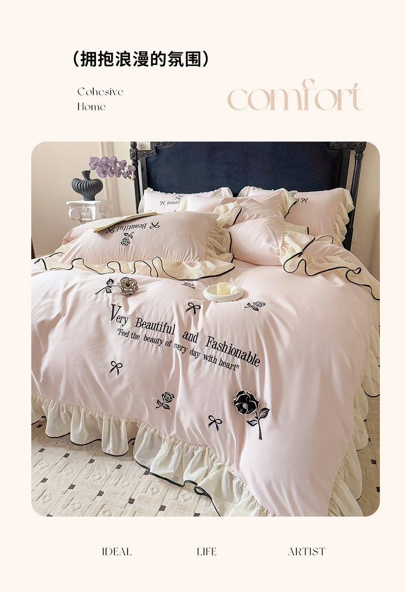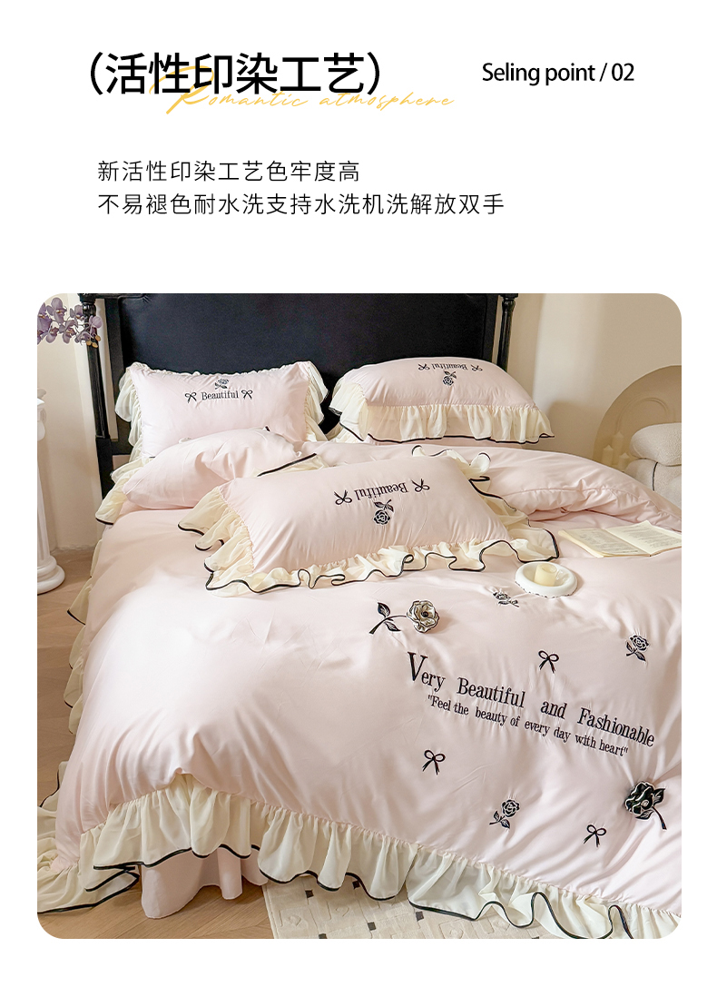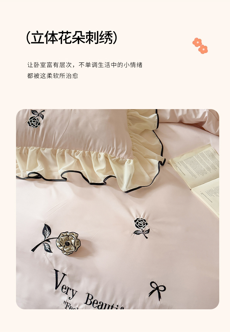 当前位置: 91家纺网 > 商品网购 > 床品套件 > 四件套 > 水洗棉四件套 > 富盛家纺 2025新款水洗亲肤棉刺绣床裙款四件套公主风四件套 茹意—粉