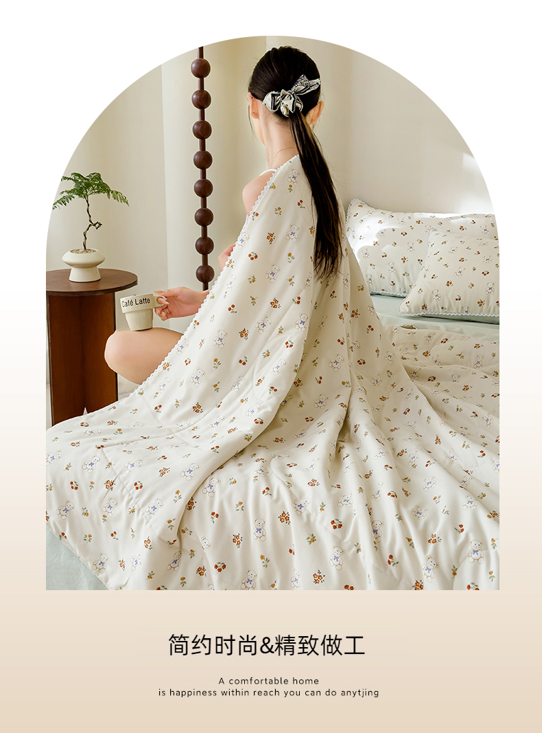 • 91家纺网 家纺一手货源 找家纺 仁凯家纺 2025新款针织棉双层纱棉花夏凉被【百分百新疆棉花填充包检测(提供买家秀)】 可爱熊