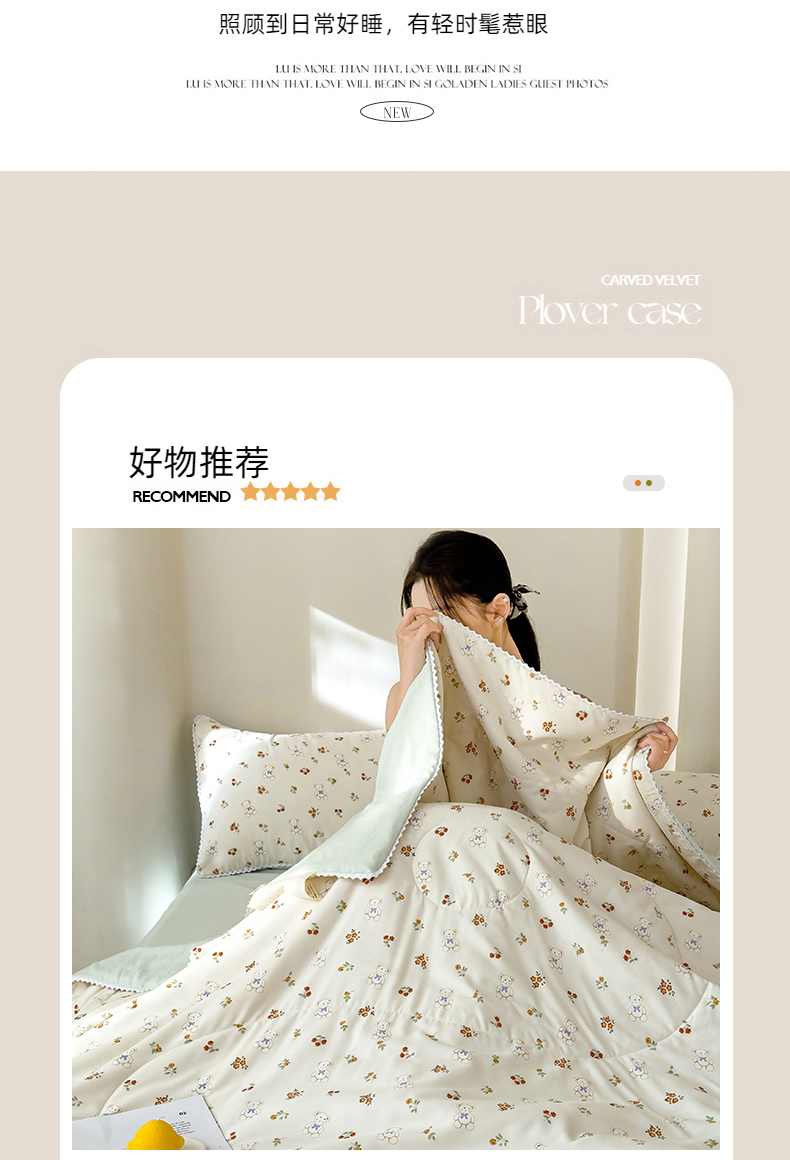 • 91家纺网 家纺一手货源 找家纺 (总)仁凯家纺 2025新款A类针织棉双层纱100%新疆棉花花边夏凉被(包检测)(提供买家秀),格调,花海,咖色蝴蝶结,可爱熊,玫瑰兔,蘑菇森林,倾心南瓜,绅士熊,紫色葡萄