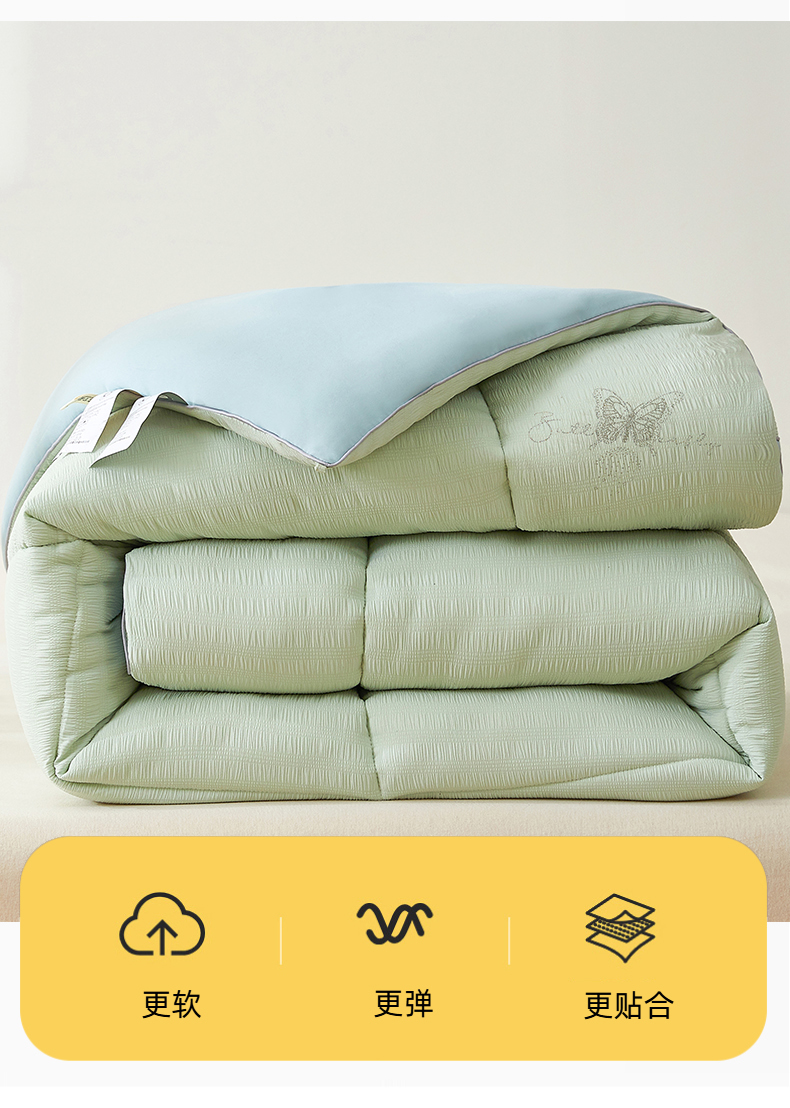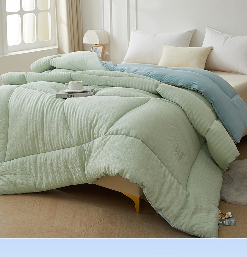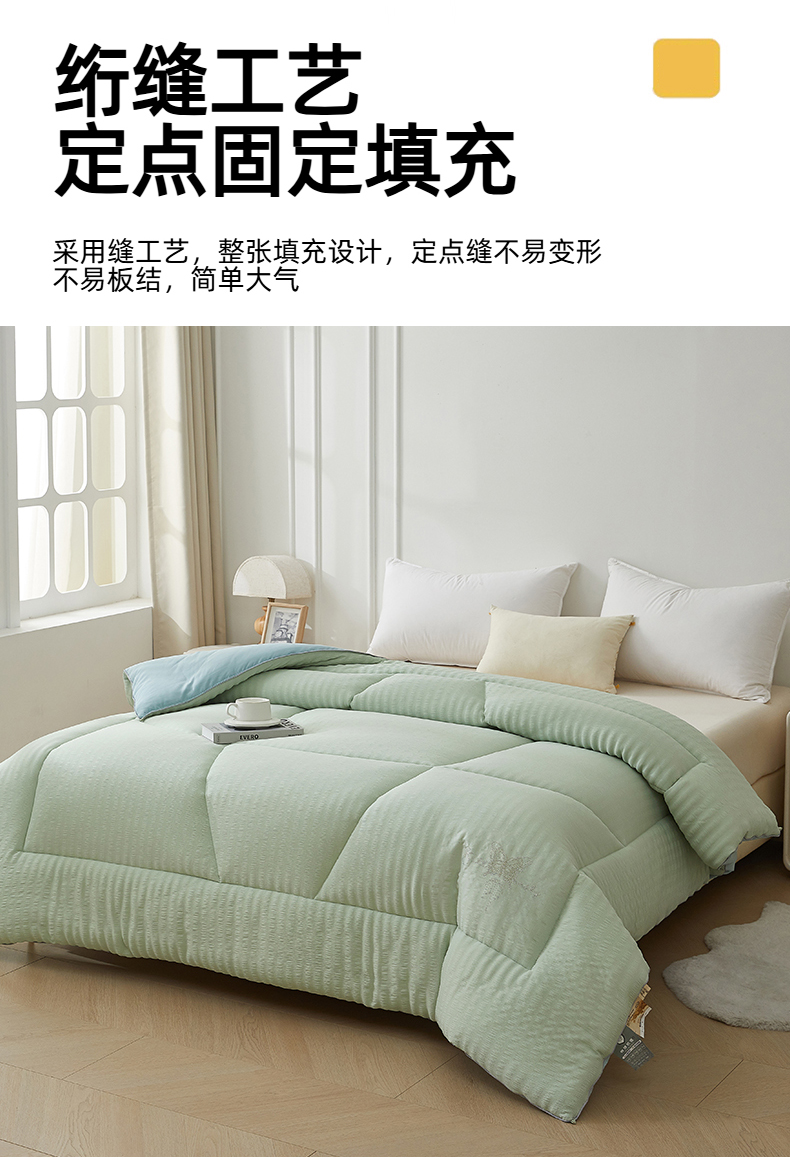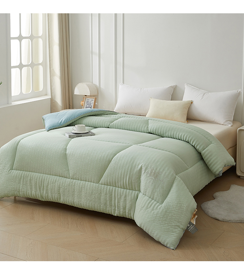 • 91家纺网 家纺一手货源 找家纺 羽涵家纺 2025新款抗菌皱皱纱水洗棉绒冬被 水波绿