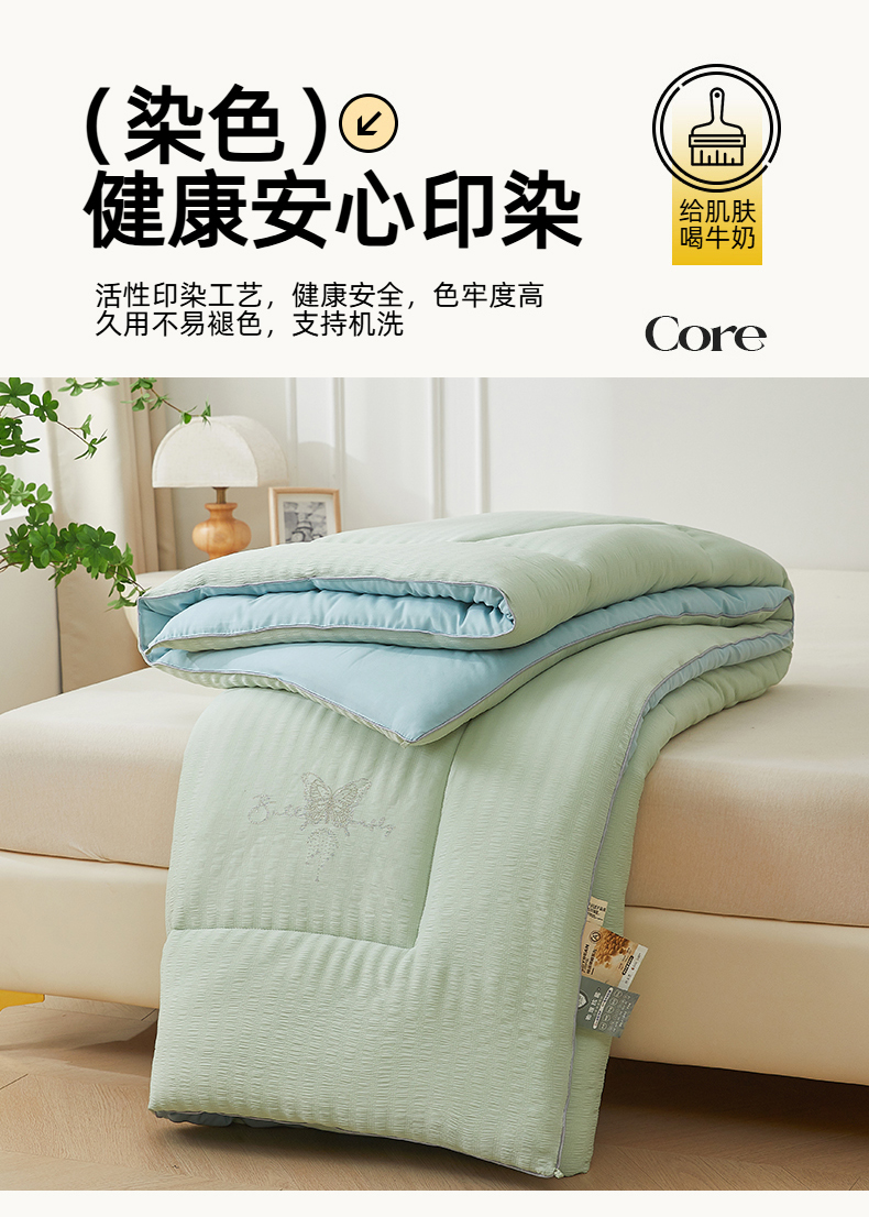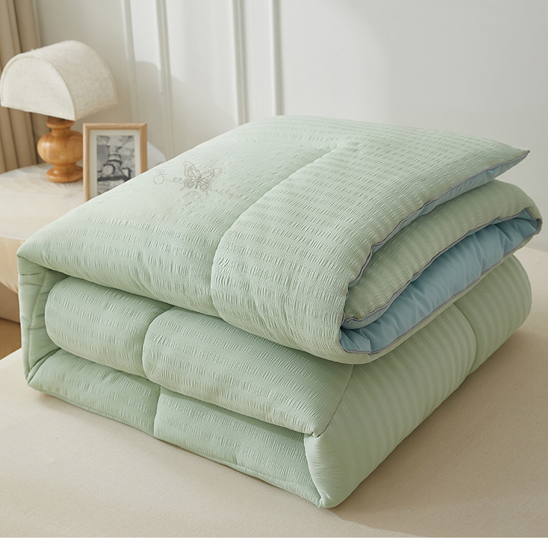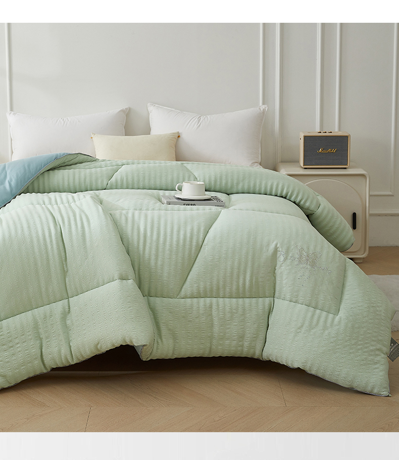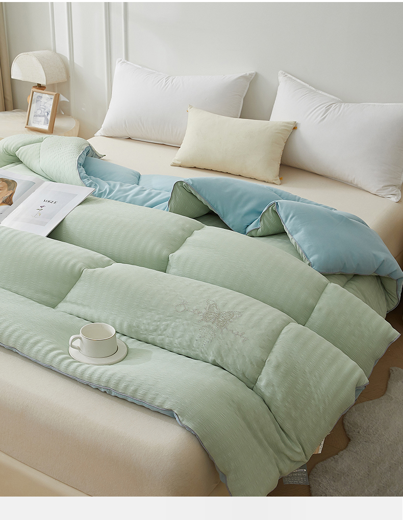 • 91家纺网 家纺一手货源 找家纺 羽涵家纺 2025新款抗菌皱皱纱水洗棉绒冬被 水波绿
