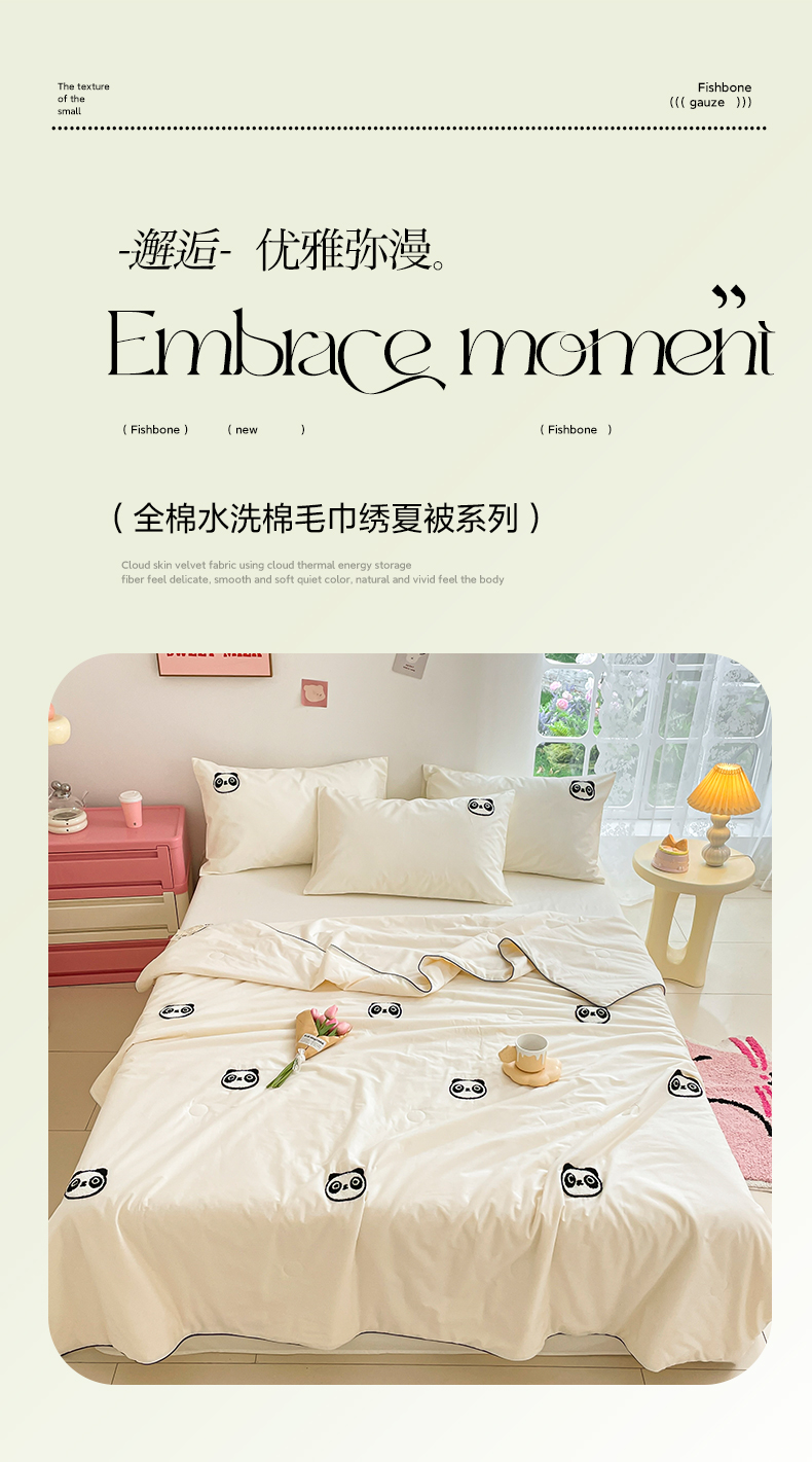 • 91家纺网 家纺一手货源 找家纺 莱登卡奴 2025新款全棉水洗棉毛巾绣大豆夏被子被芯 呆萌熊