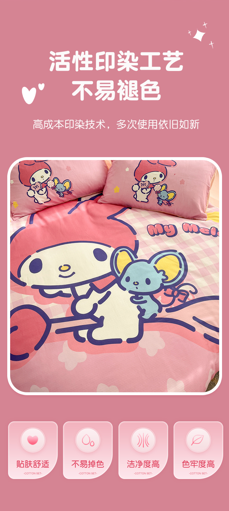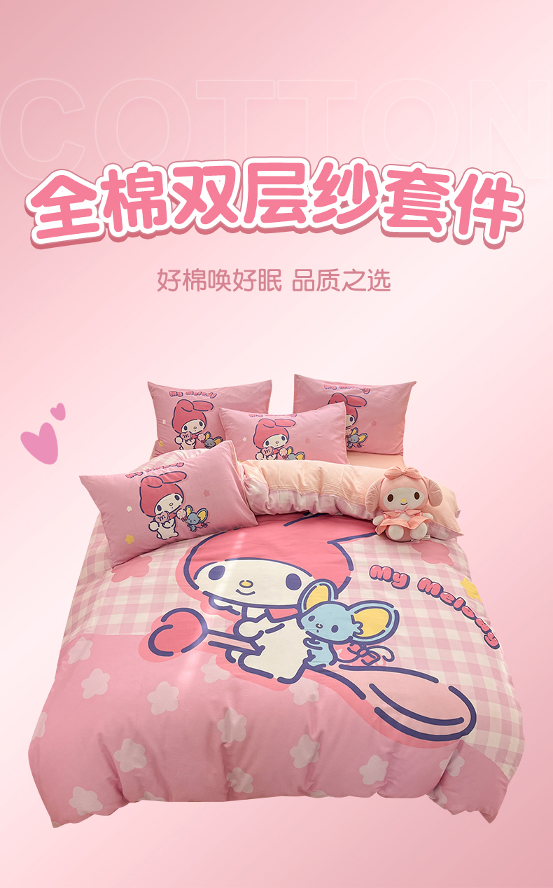 (总)孩子王家纺 2025新款卡通全棉纯棉正版授权小版三丽鸥四件套(含标),甜甜kt,晚安大耳狗,晚安美乐蒂,布丁库洛米,纯真美乐蒂,汉堡大耳狗,梦幻库洛米,奶猫kt,俏皮美乐蒂,甜库伙伴,甜糯凯蒂