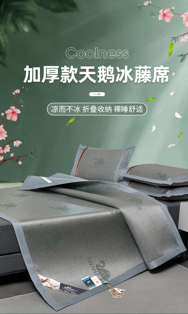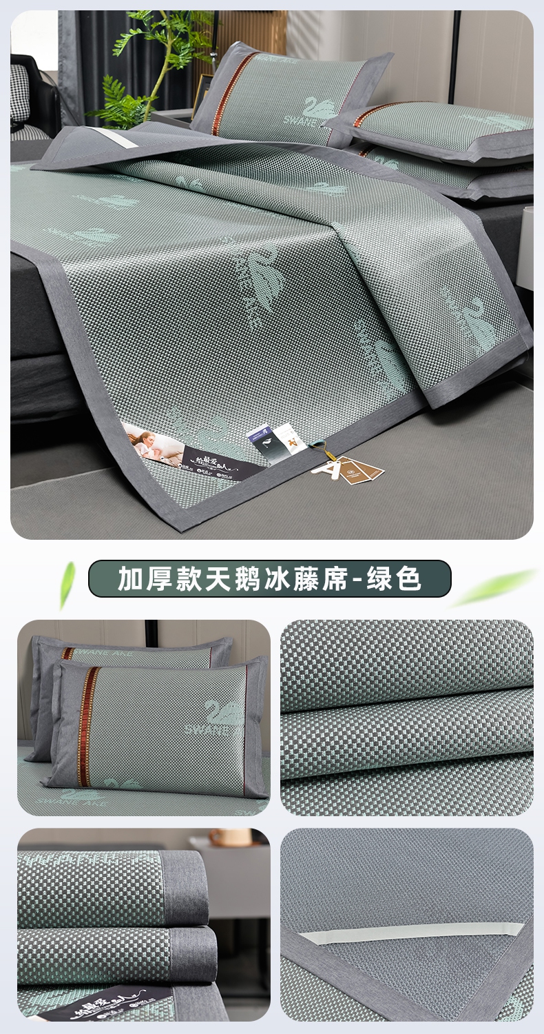 当前位置: 91家纺网 > 商品网购 > 床上用品 > 凉席 > 藤席 > 小牛席业 2025新款加厚款-天鹅冰藤席系列凉席藤席冰藤席冰丝席竹席草席空调席乳胶席豆豆席 加厚款-天鹅冰藤席(墨绿)