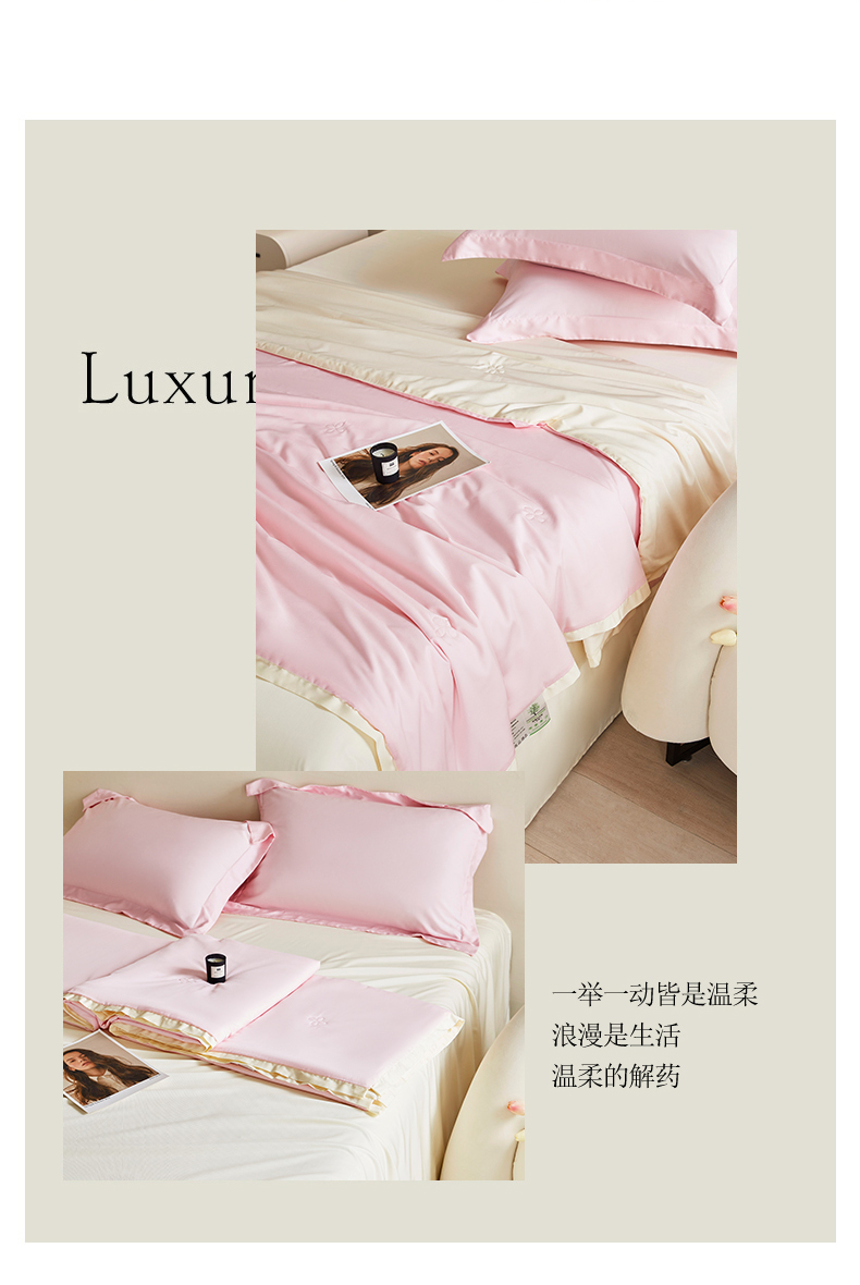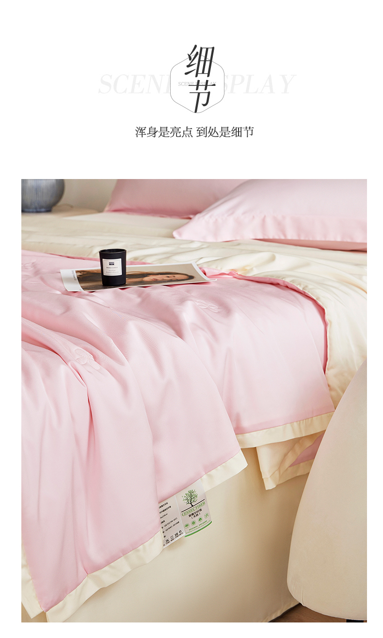 商品名称:天瑜家纺 2025新款纯色天丝夏被 粉+米黄
