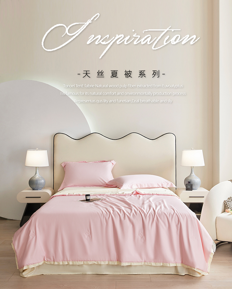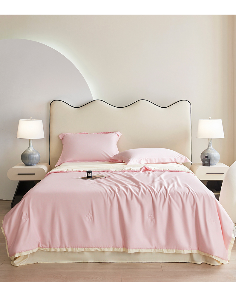 天瑜家纺 2025新款纯色天丝夏被 粉+米黄
