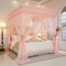 (总)2025新款双层花边全包围床笠款三开门蚊帐-幽梦星辰,奶黄,藕玉,颜淡蓝