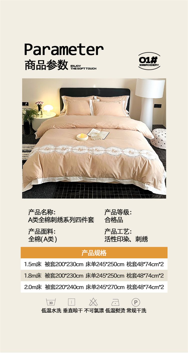 商品名称:(总)懒猫家纺 2025新款【克莉斯】全棉刺绣四件套