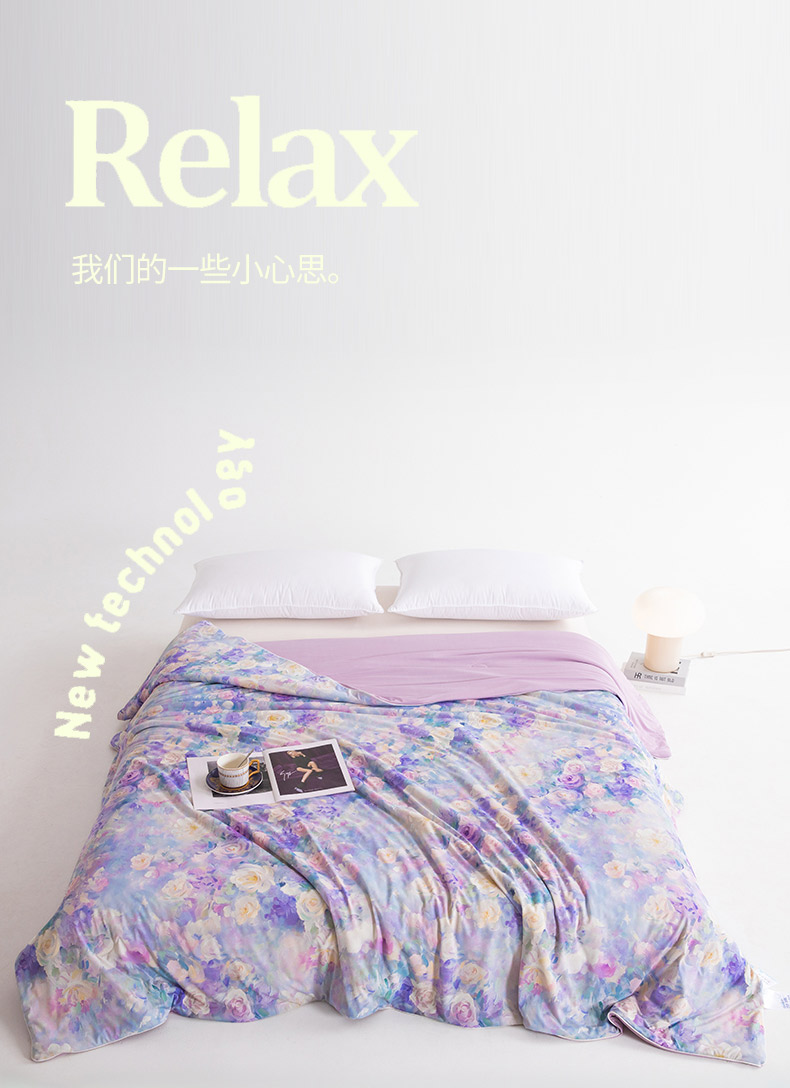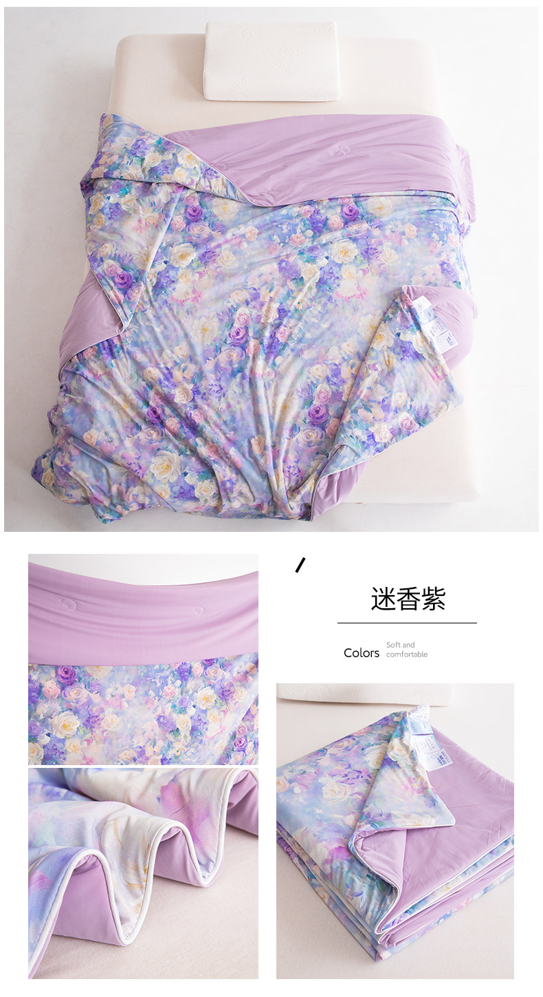 睡棉坊 2025新款数码印花凉感丝水墨画系列夏被-场景二 迷香紫