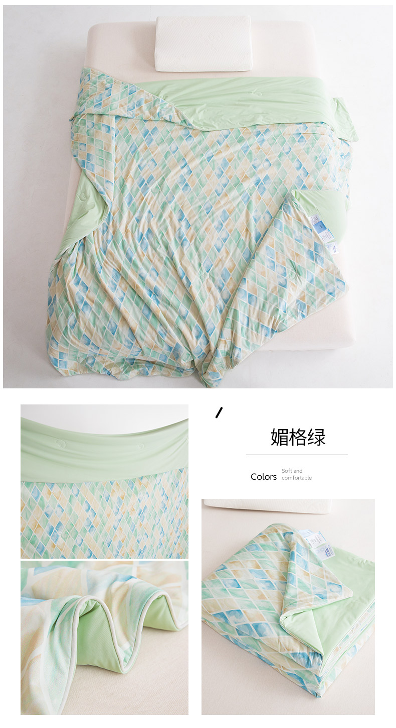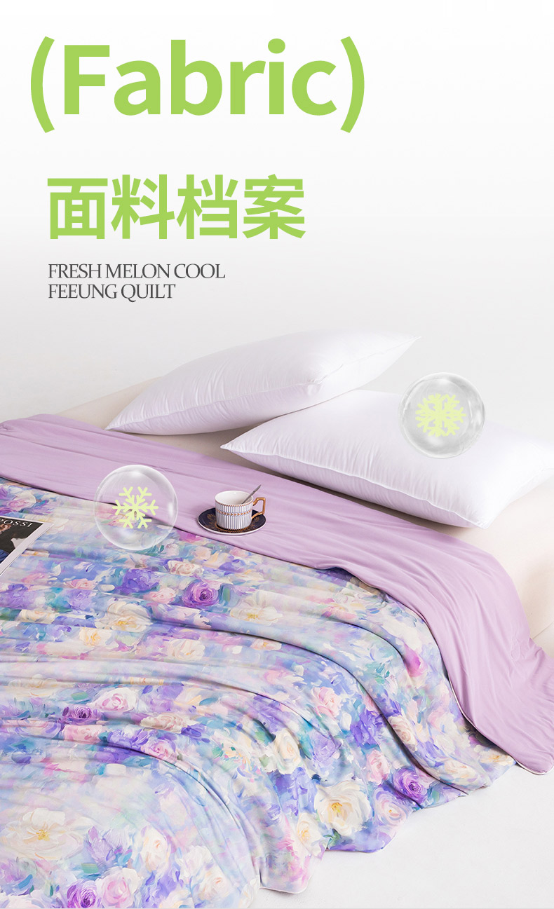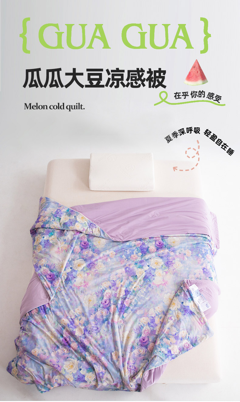 (总)睡棉坊2025新款数码印花高克重凉感丝夏凉被呱呱被10%大豆纤维填充带质检报告,梵高灰,国色东方,静若繁花,媚格绿,迷香紫,郁情粉