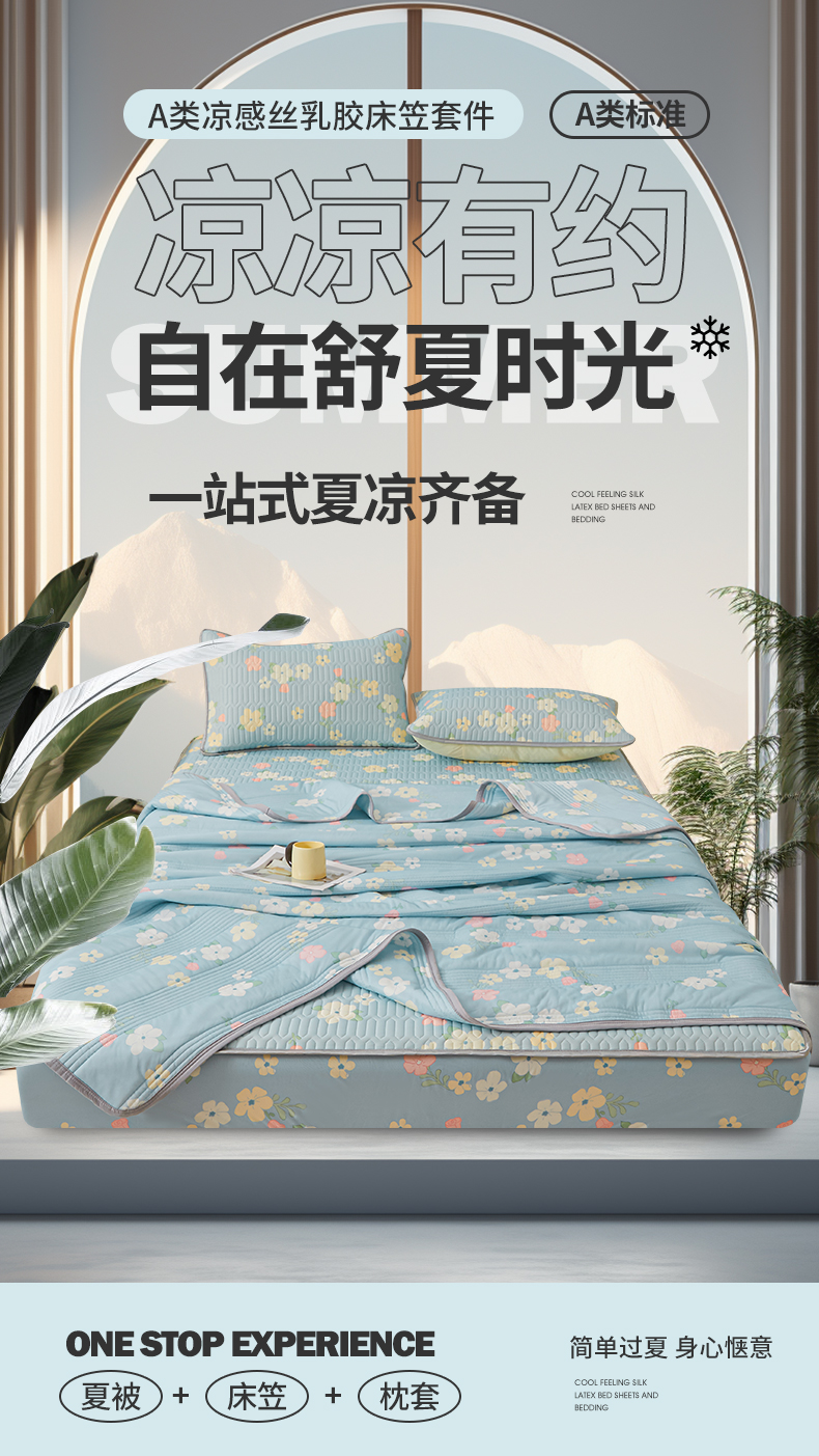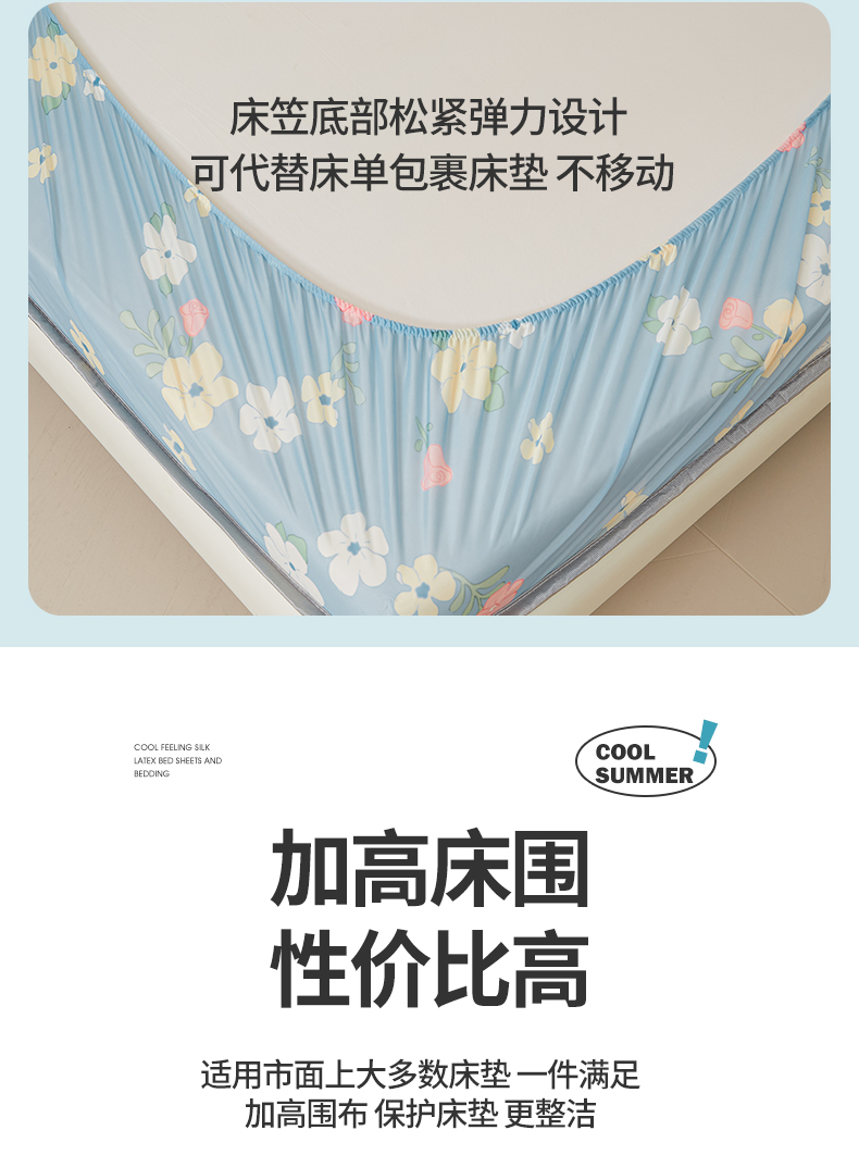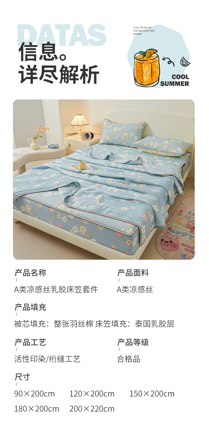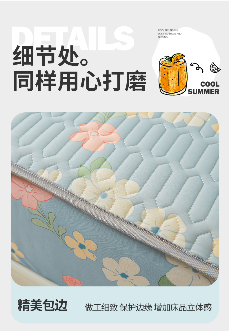 商品名称:伊人坊 2025新款A类凉感丝乳胶床笠凉席三件套 花花世界