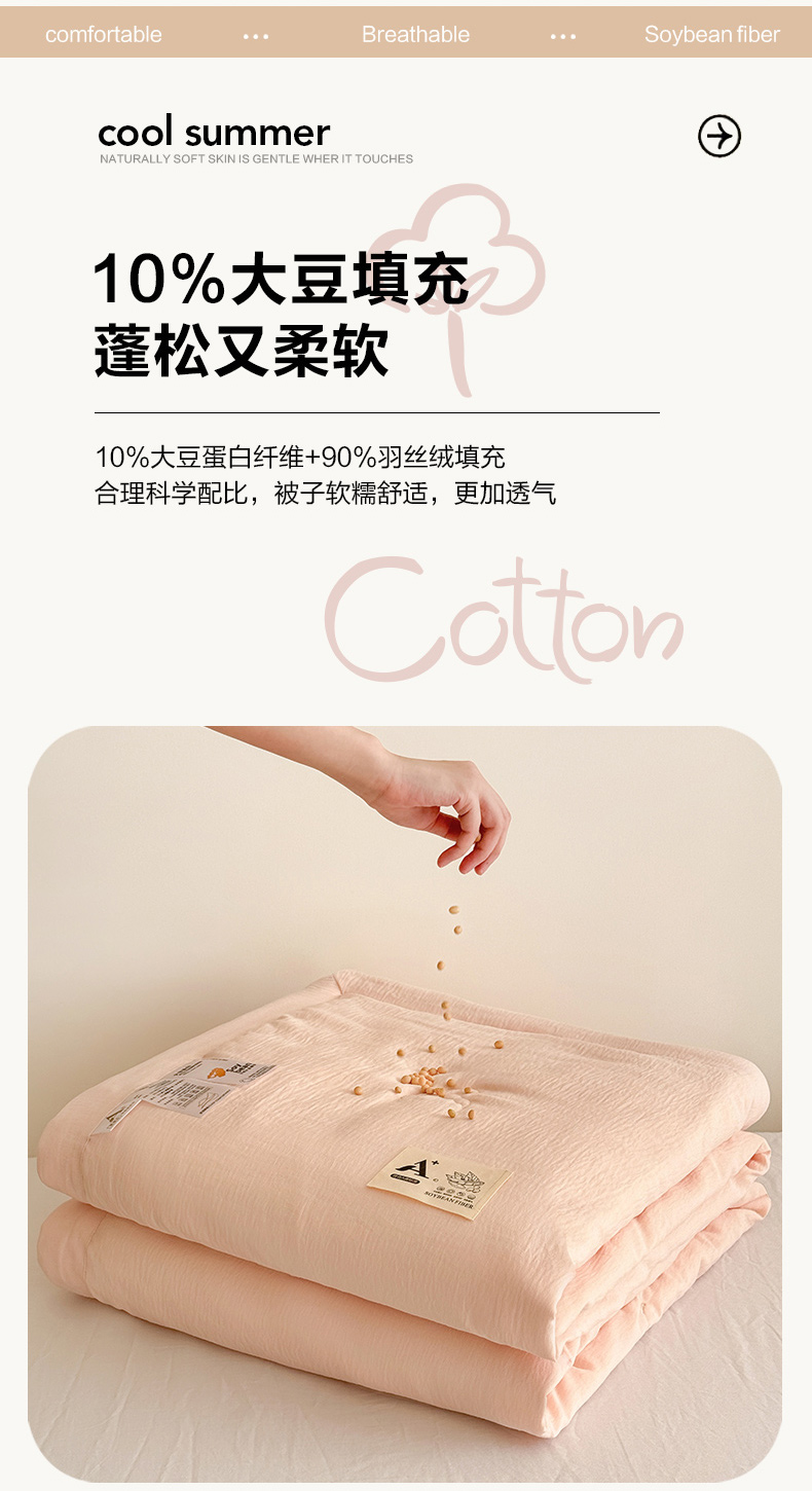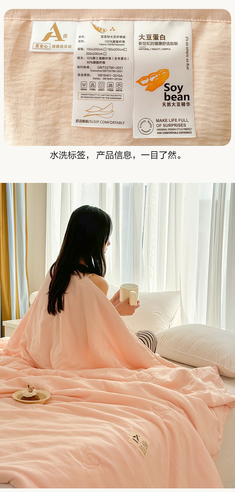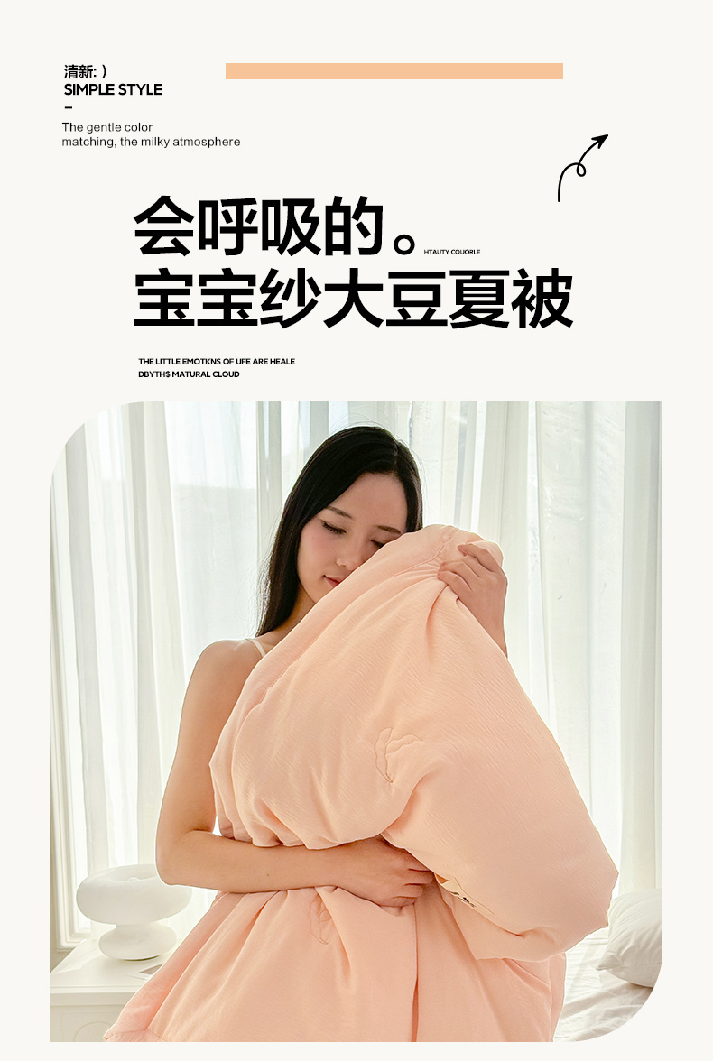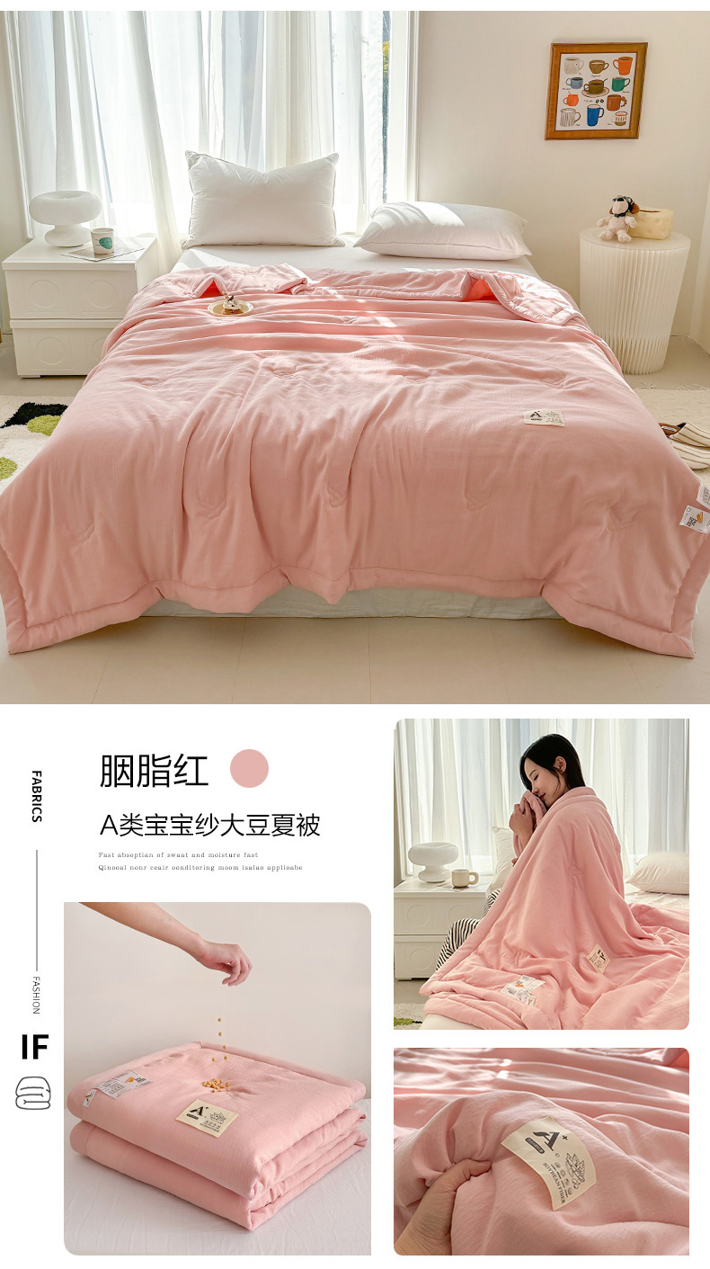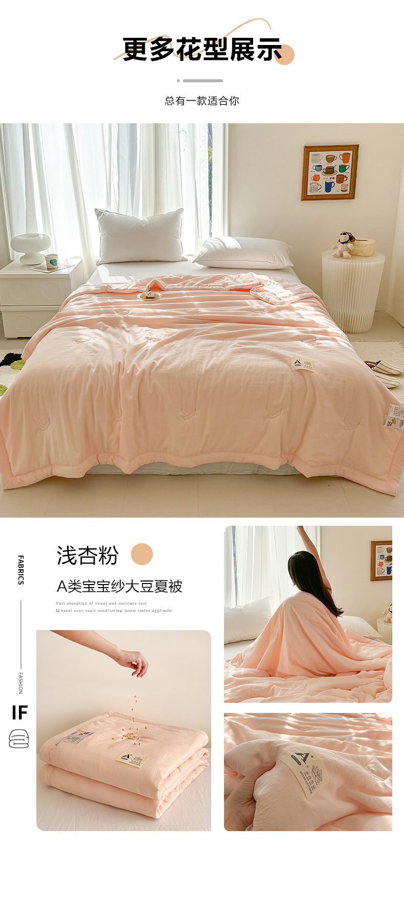 商品名称:佰亿莱 2025新款母婴级无印风超柔宝宝纱大豆夏凉被 浅杏粉