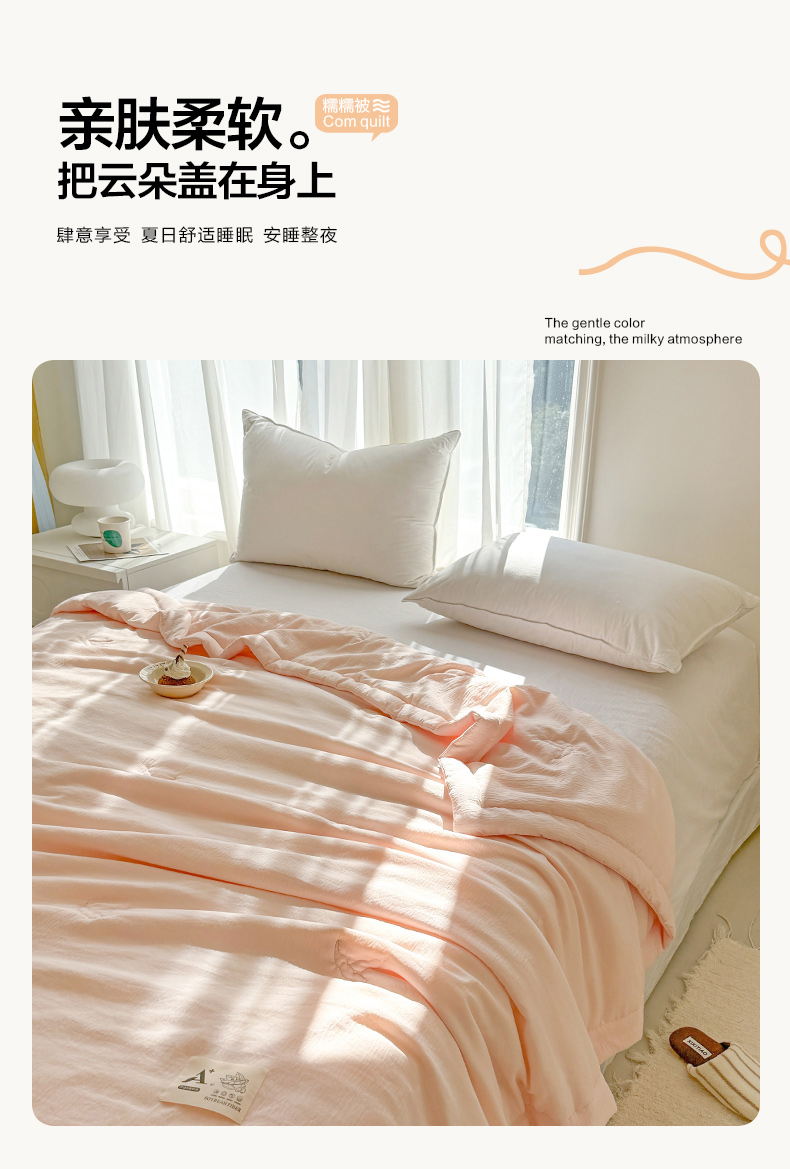 佰亿莱 2025新款母婴级无印风超柔宝宝纱大豆夏凉被 浅杏粉