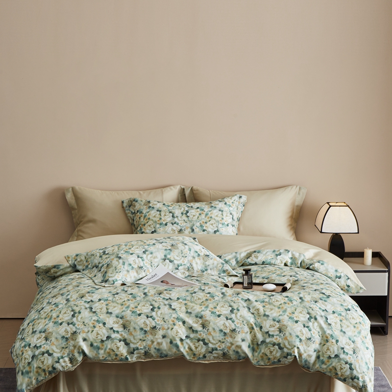 顾家家居 2025新款莱塞尔兰精天丝印花四件套 青梧