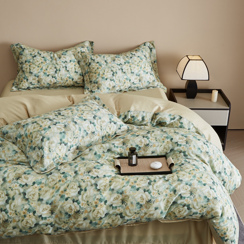商品名称:顾家家居 2025新款莱塞尔兰精天丝印花四件套 青梧