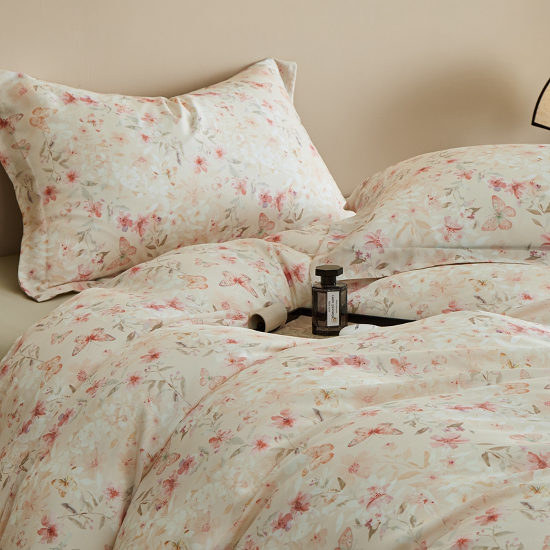 商品名称:顾家家居 2025新款莱塞尔兰精天丝印花四件套 西溪桃花