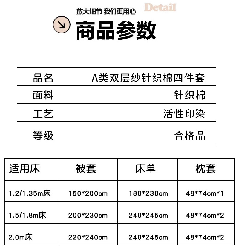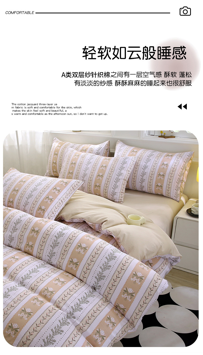 商品名称:织写 2025新款A类双层纱针织棉四件套床单四件套床单四件套小清新四件套 初享时光-咖