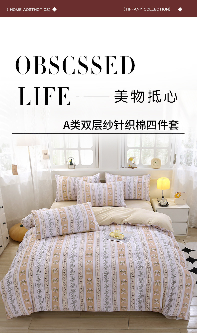 织写 2025新款A类双层纱针织棉四件套床单四件套床单四件套小清新四件套 浪漫物语,浪漫物语