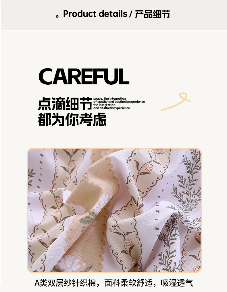 织写 2025新款A类双层纱针织棉四件套床单四件套床单四件套小清新四件套 花开烂漫,花开烂漫