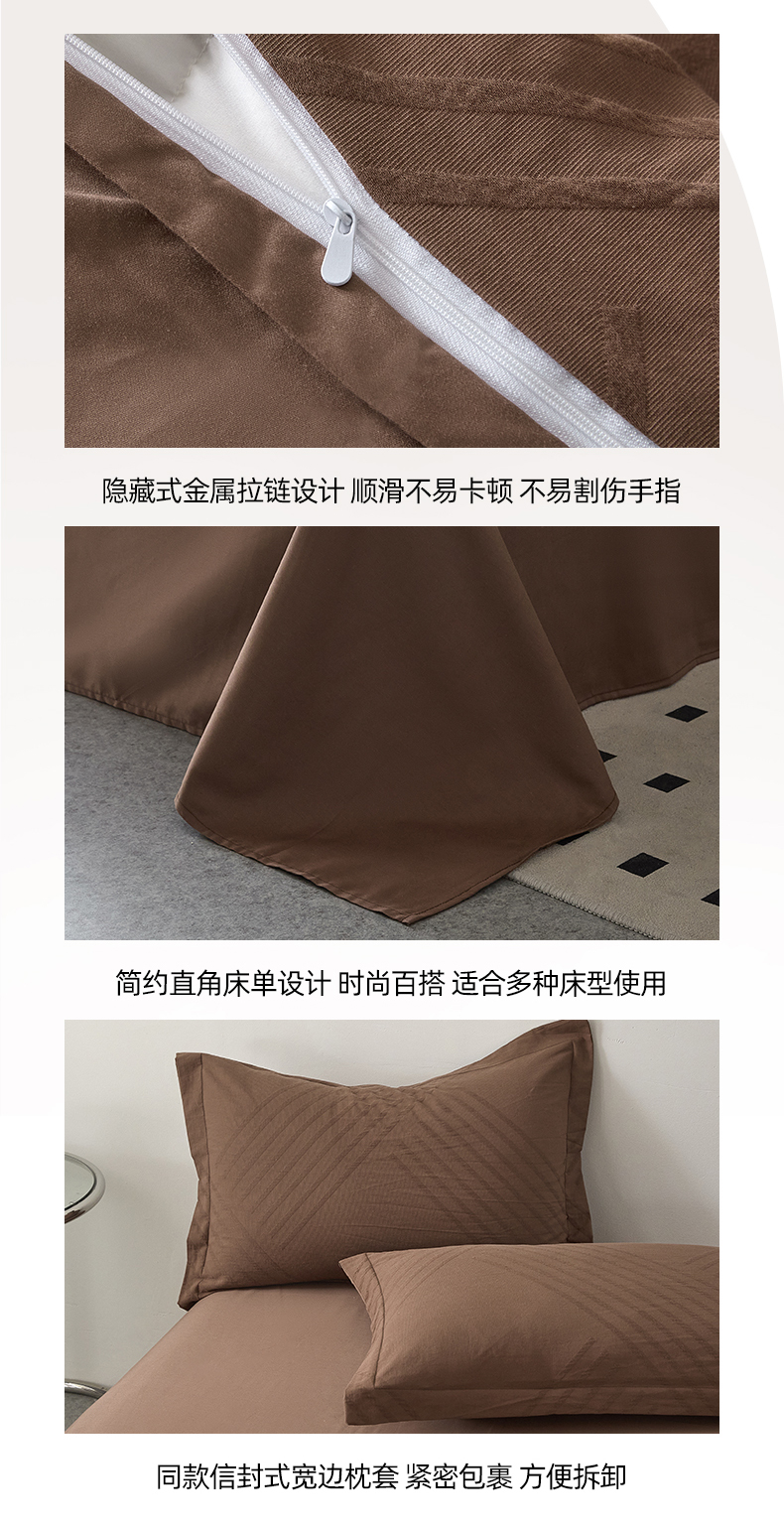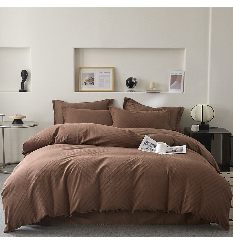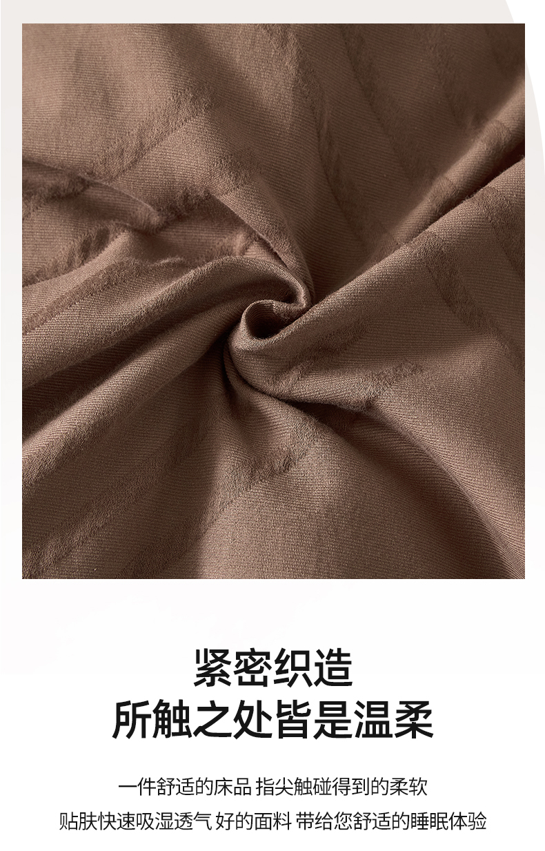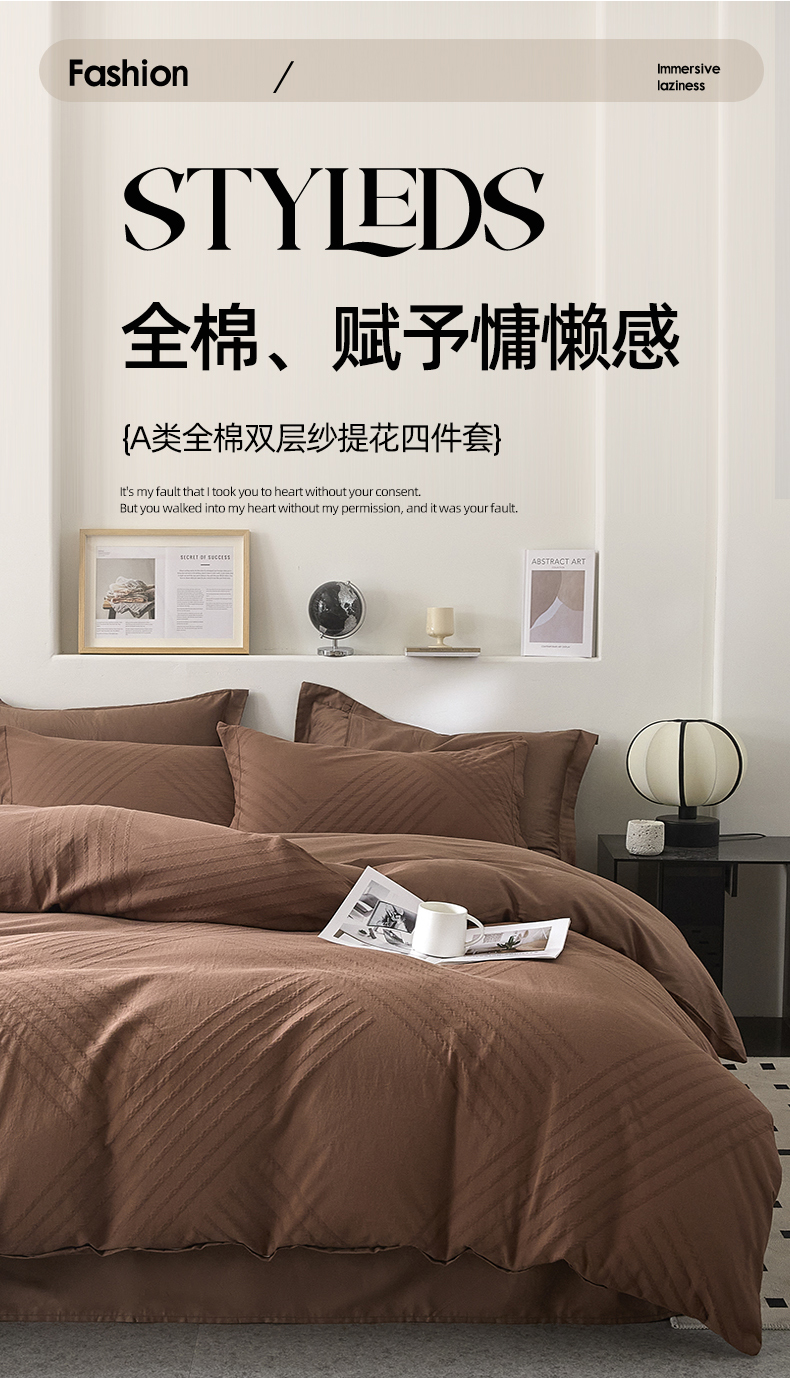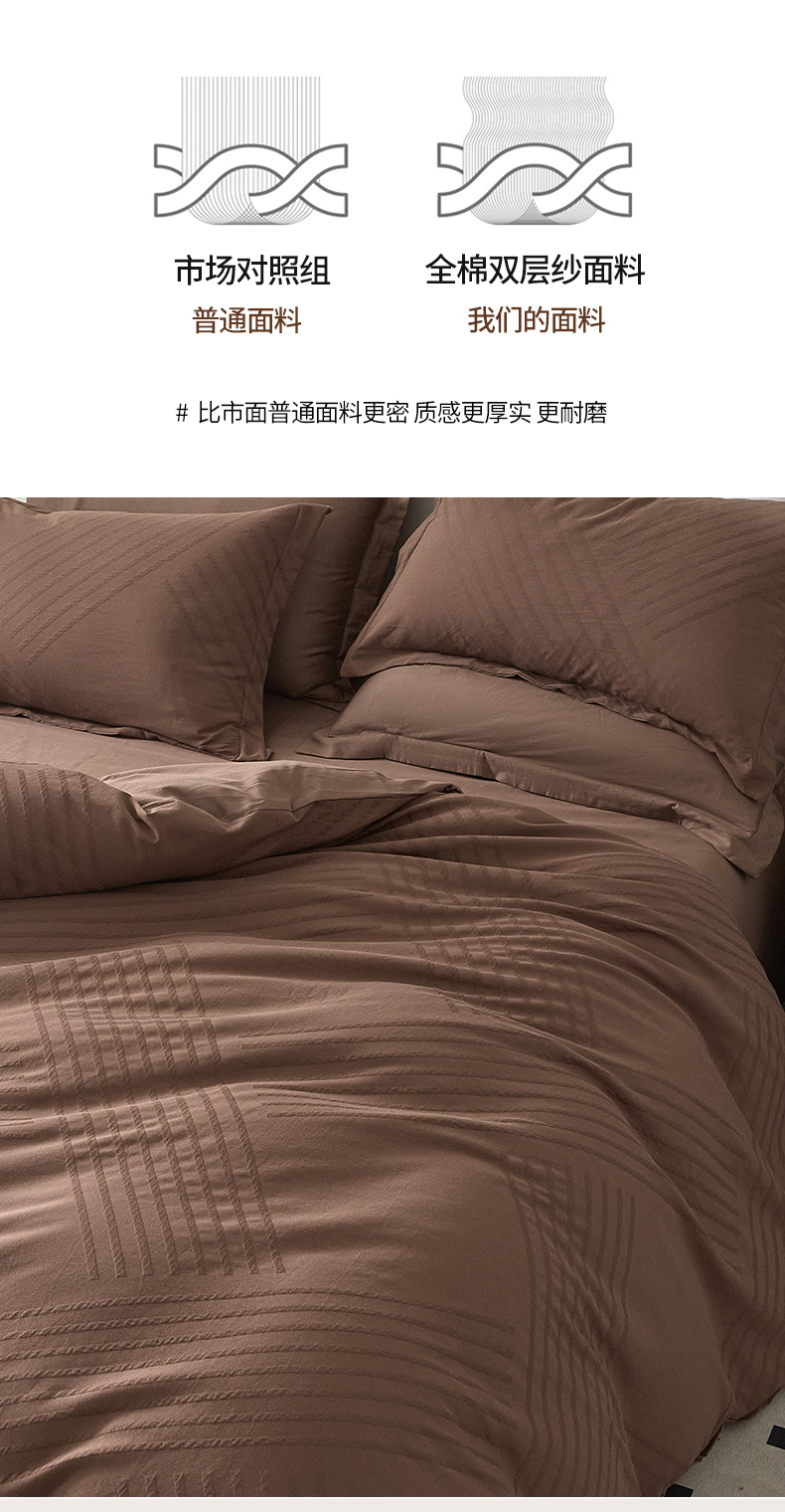七七家纺 新款提花双层纱全棉四件套 菱格红棕