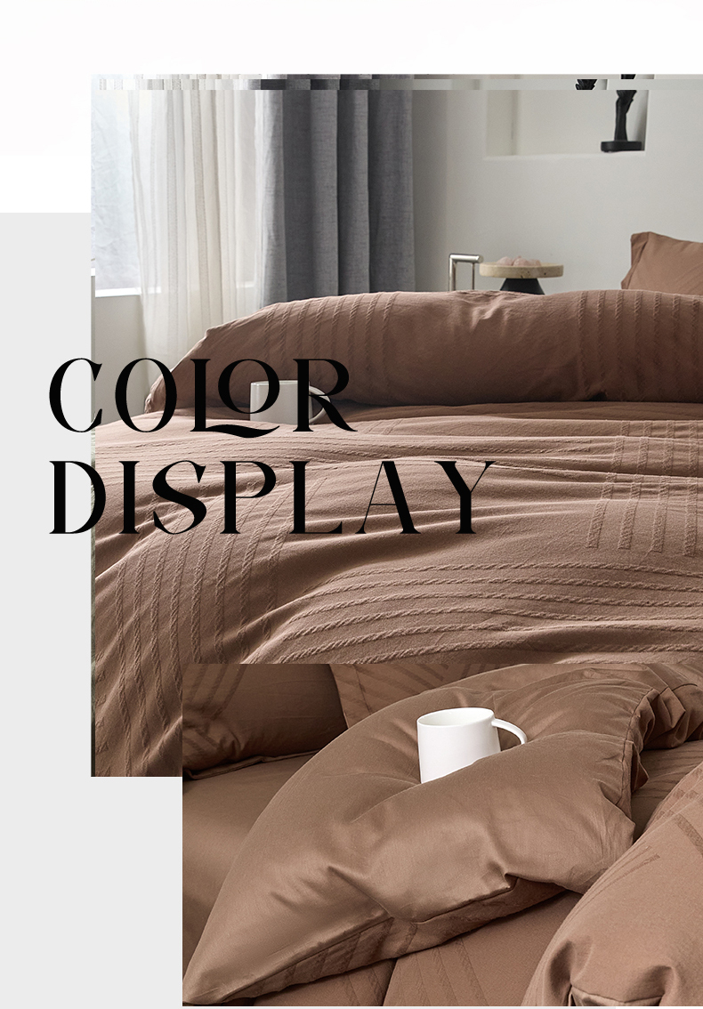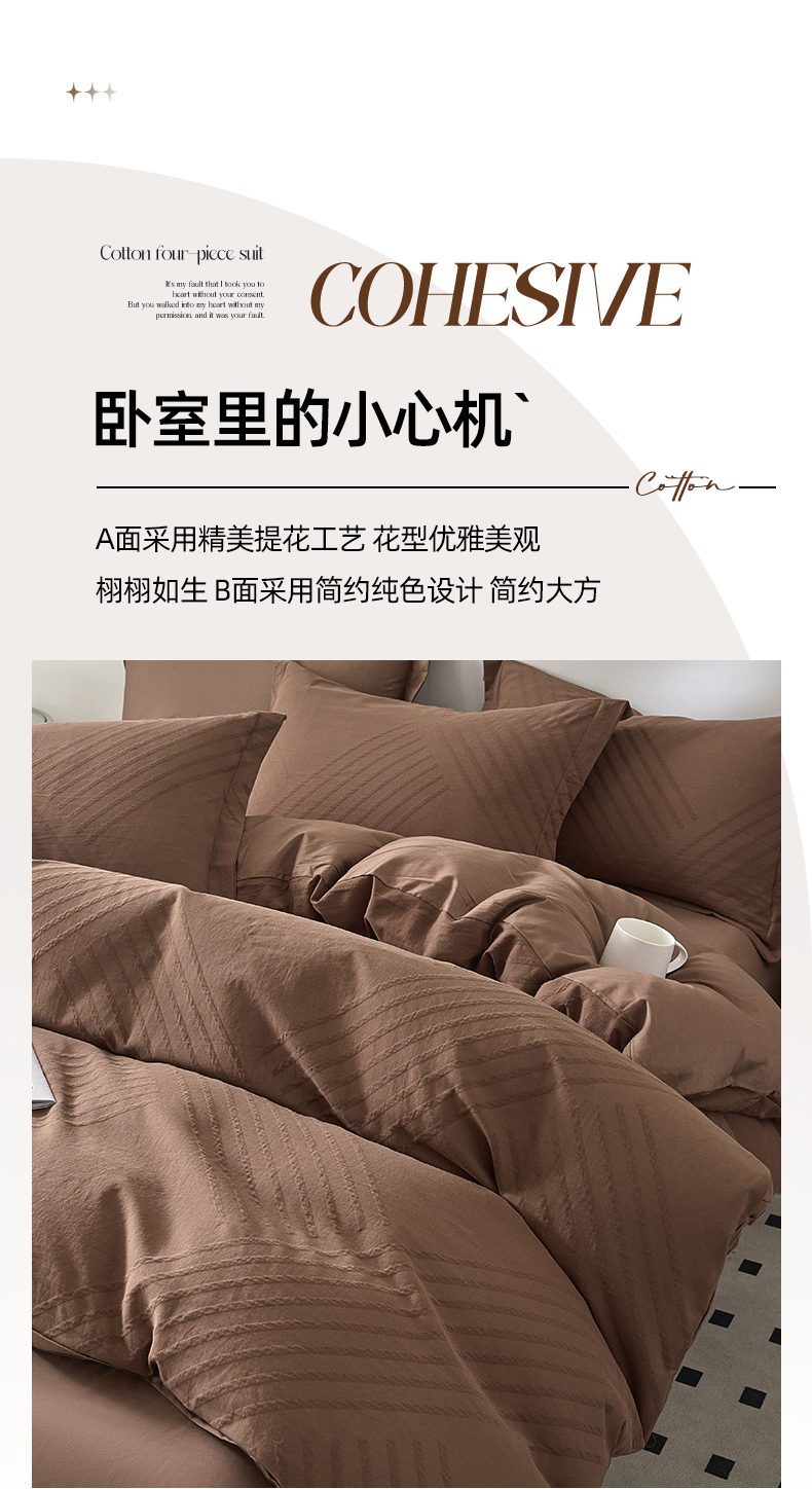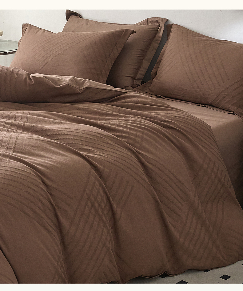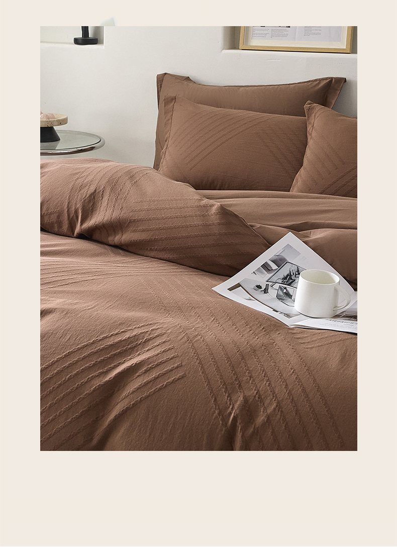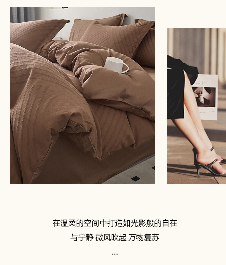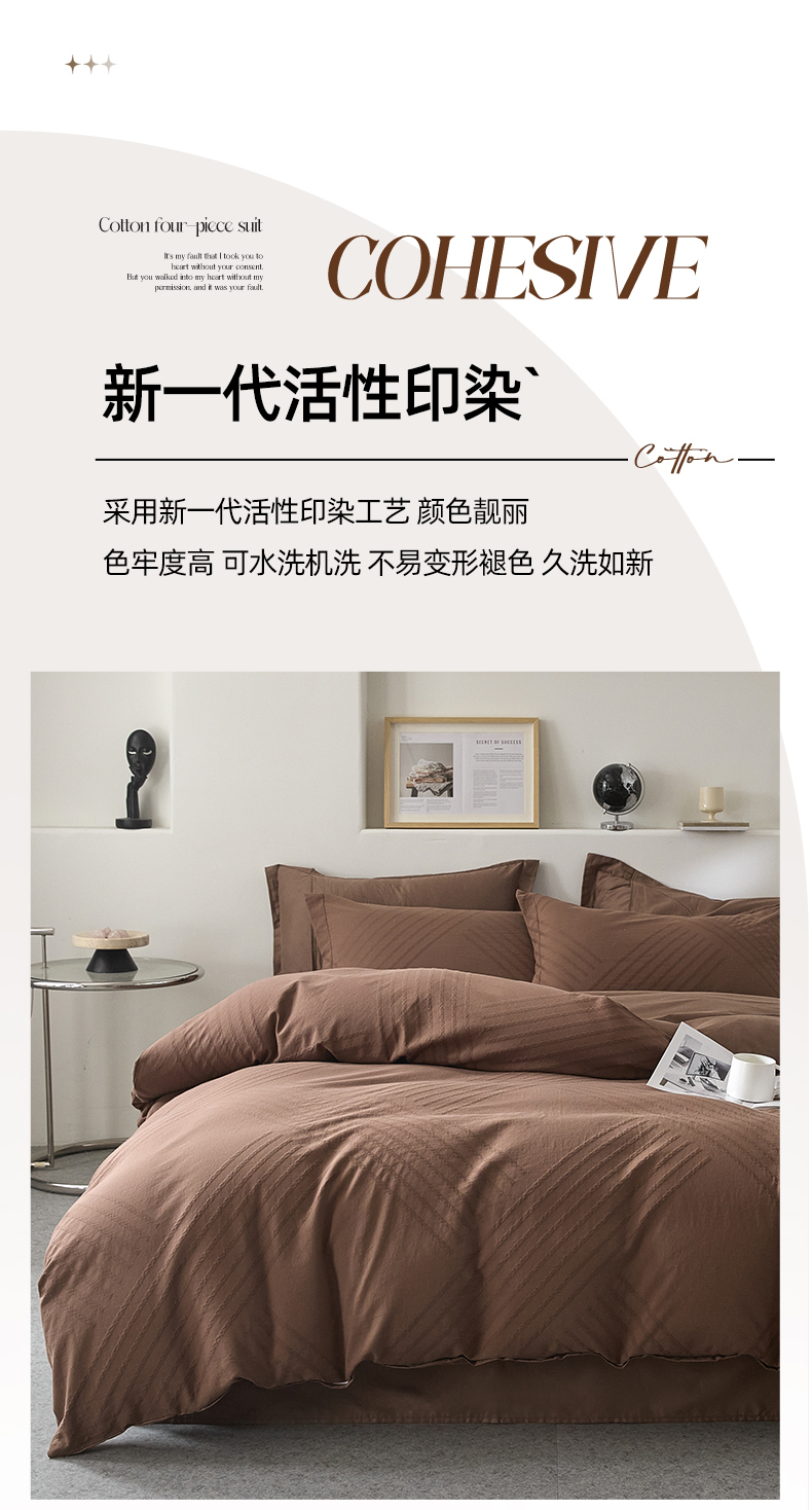 七七家纺 新款提花双层纱全棉四件套 菱格红棕
