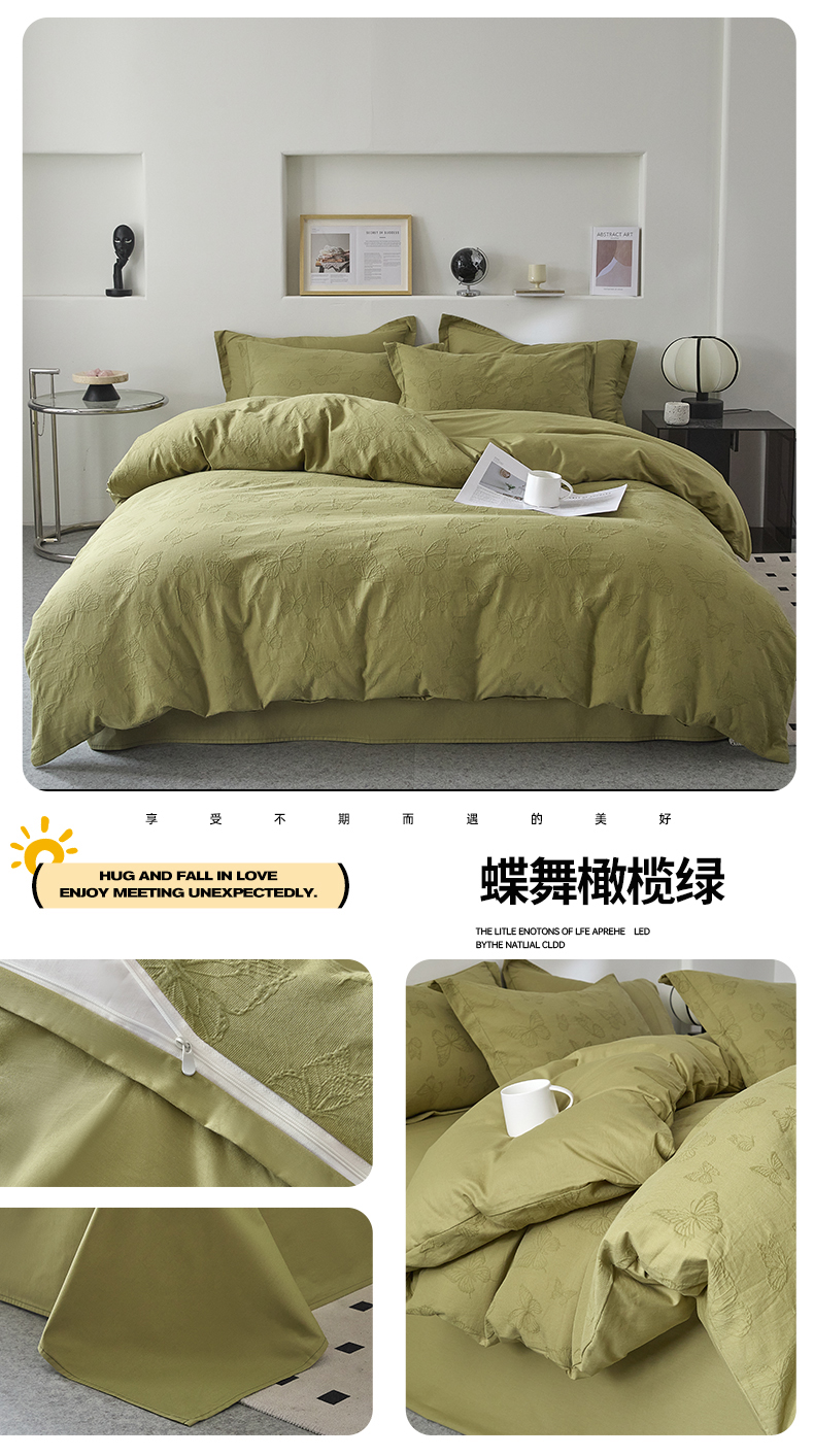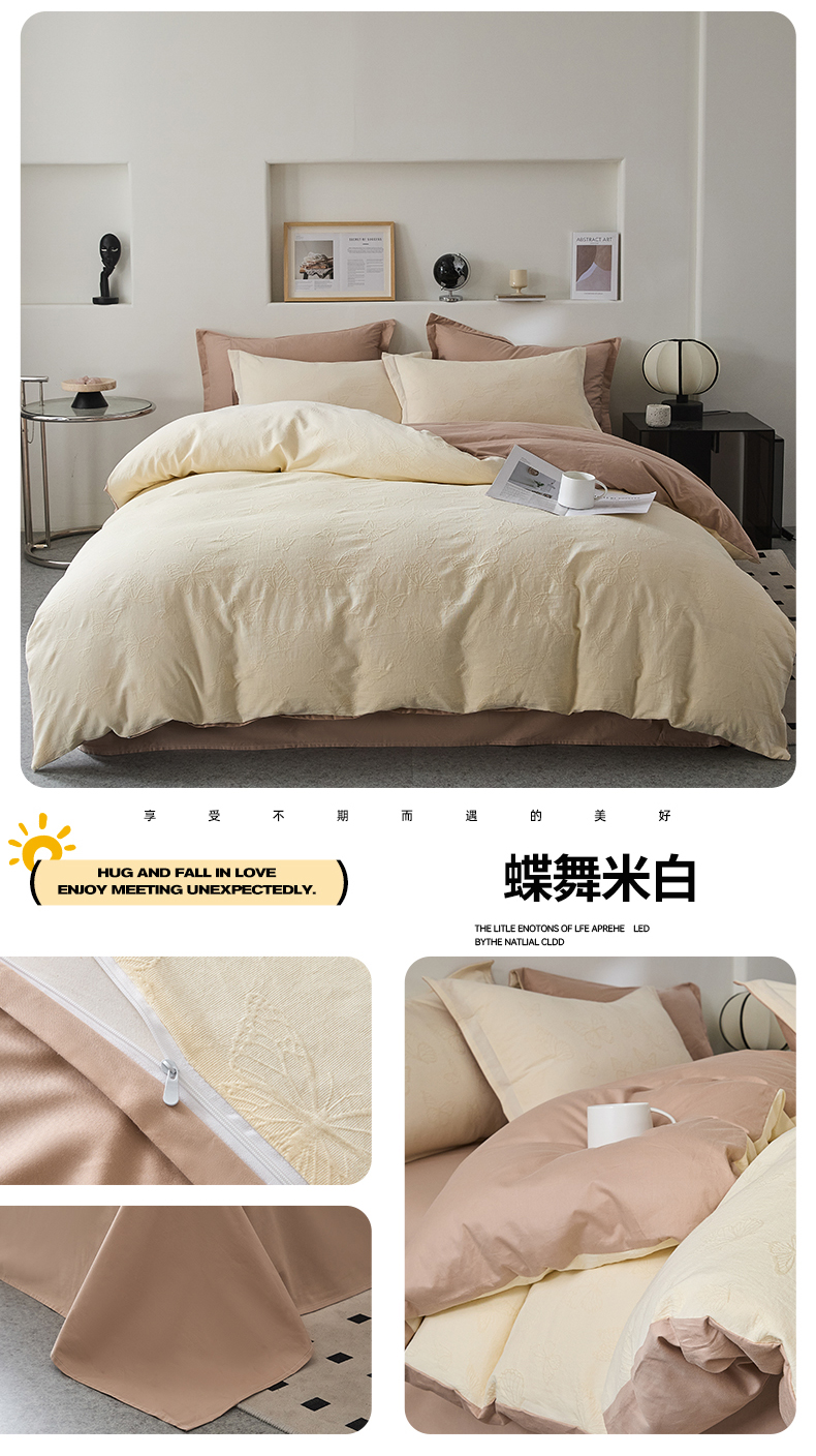(总)七七家纺 2025新款水洗棉刺绣四件套梦见系列,梦见豆沙,梦见粉,梦见黄,梦见蓝,梦见紫