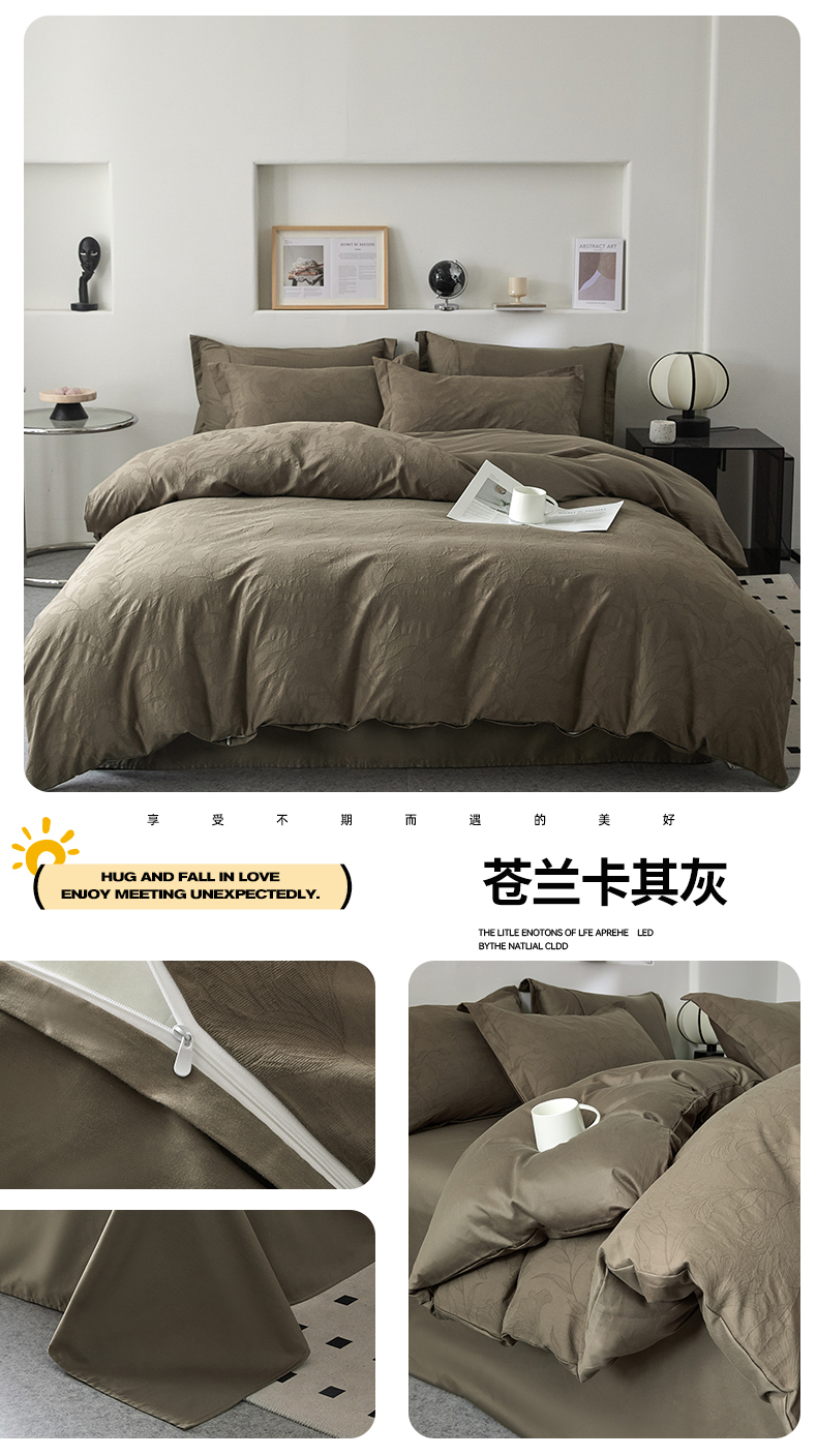 (总)七七家纺 新款提花双层纱全棉四件套,苍兰灰粉,苍兰卡其灰,蝶舞橄榄绿,蝶舞米白,菱格红棕,菱格米白