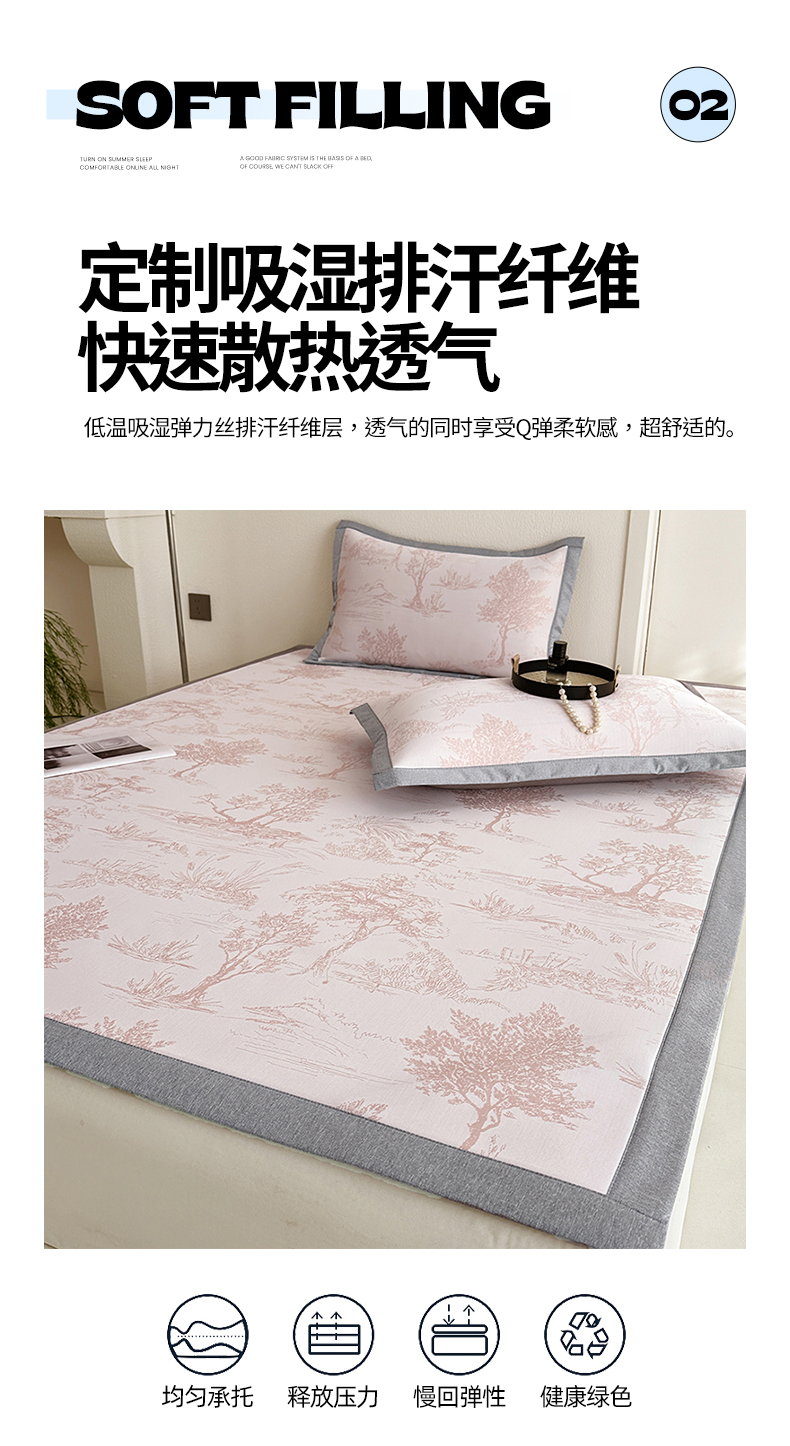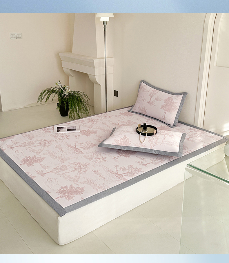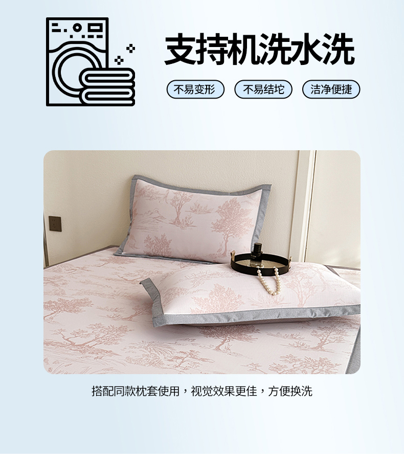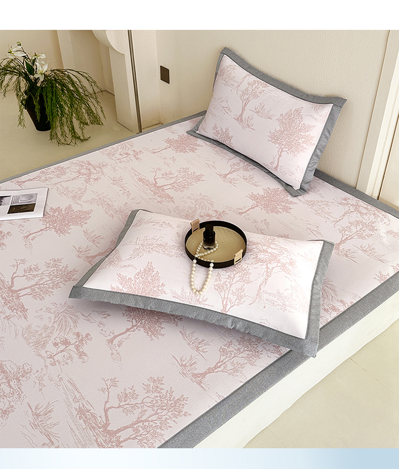 商品名称:网客家纺 2025新款高分子PE(聚乙烯)提花凉感软席 水墨江南-粉