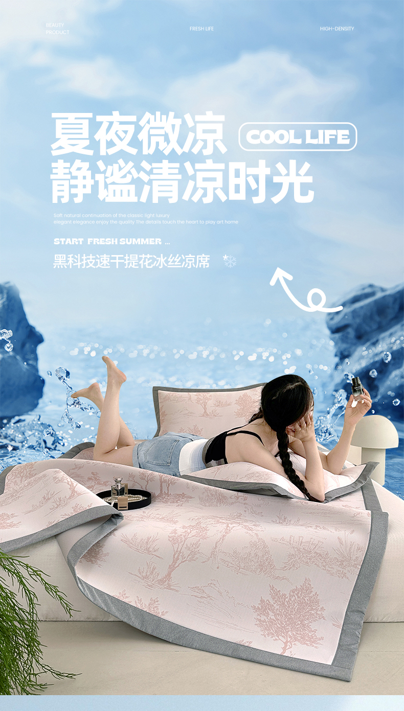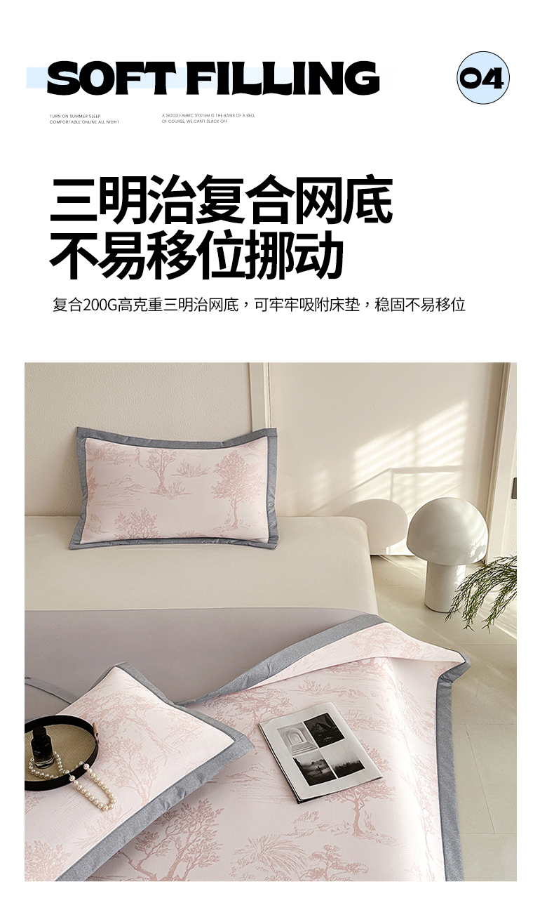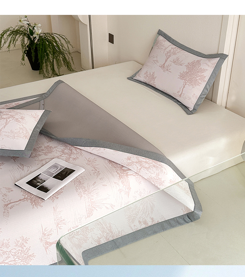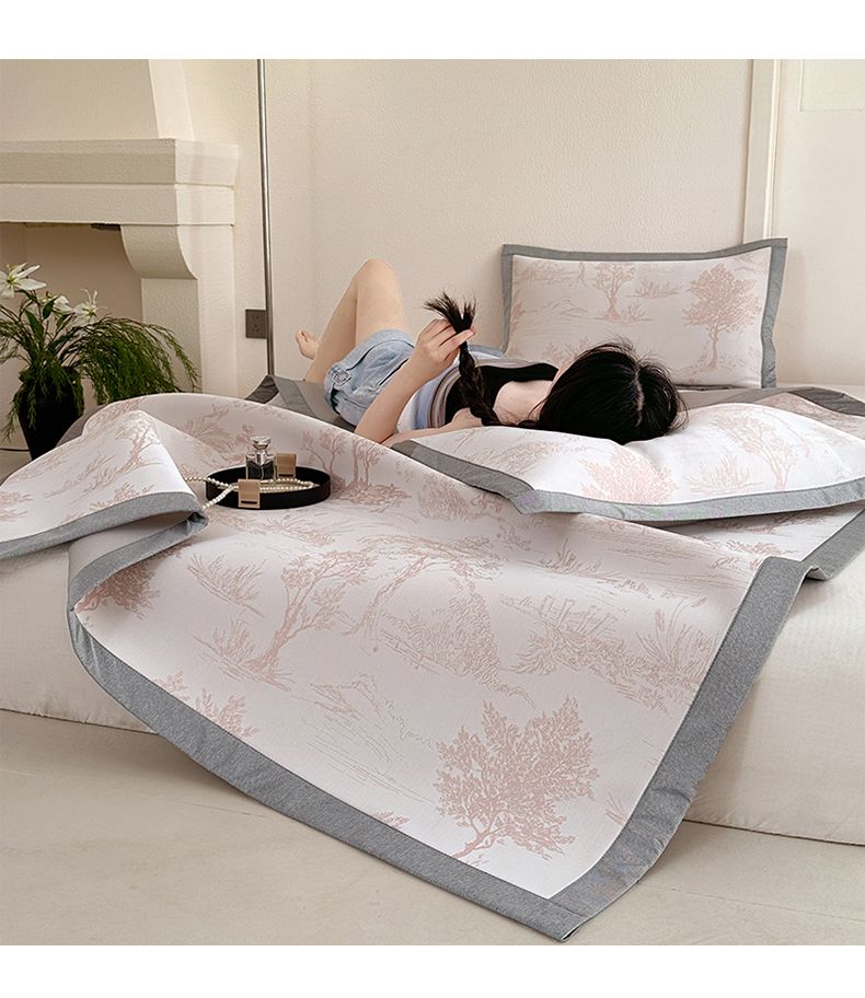商品名称:网客家纺 2025新款高分子PE(聚乙烯)提花凉感软席 水墨江南-粉