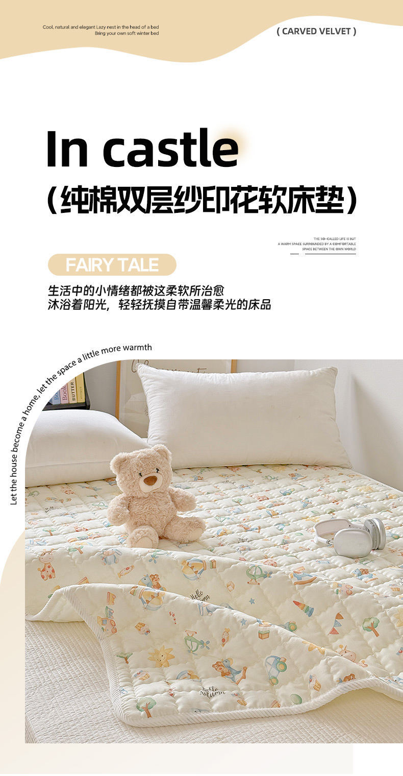 商品名称:澳萝拉 2025新款纯棉双层纱印花软床垫床褥 玩具屋