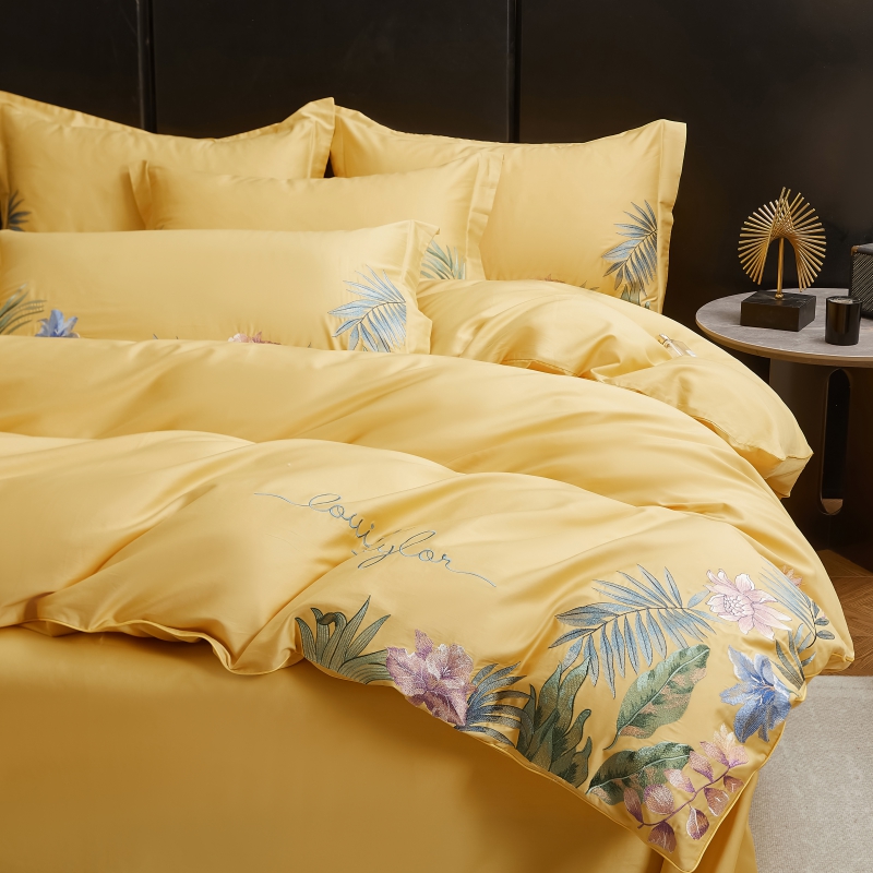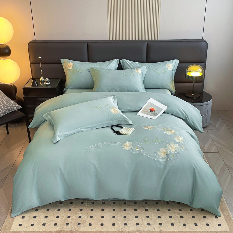 (总)布乐意 2021新欧美风绣花40S全棉轻奢风四件套纯棉,宾利蓝,草绿,淡雅蓝,豆沙,粉色,金黄,咖啡,浅紫,银灰,紫色